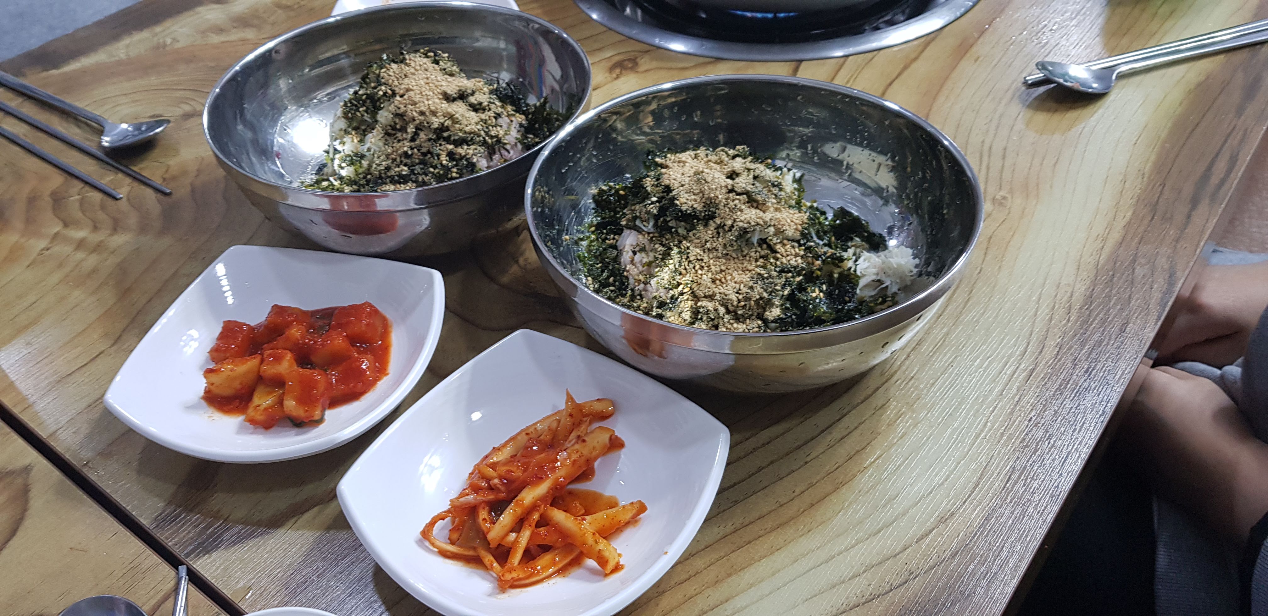 마지막으로 게살 비빔밥을 탕과 함께 먹어줍니다.