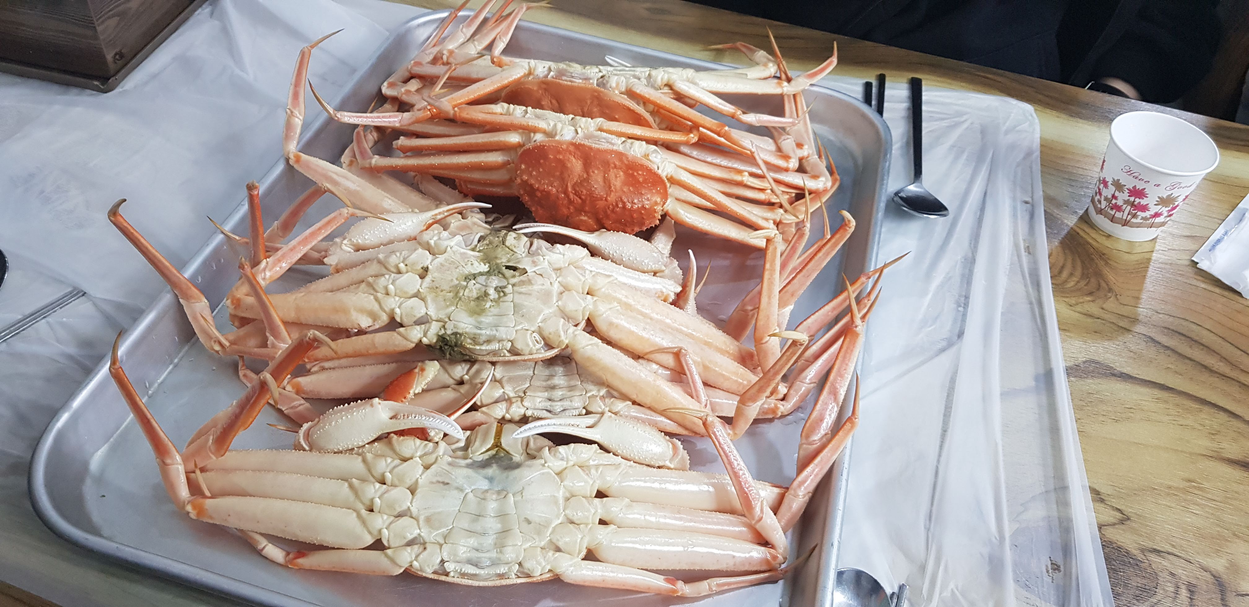 일행과 이런저런 이야기를 나누다보니 대게 찜이 나왔습니다.