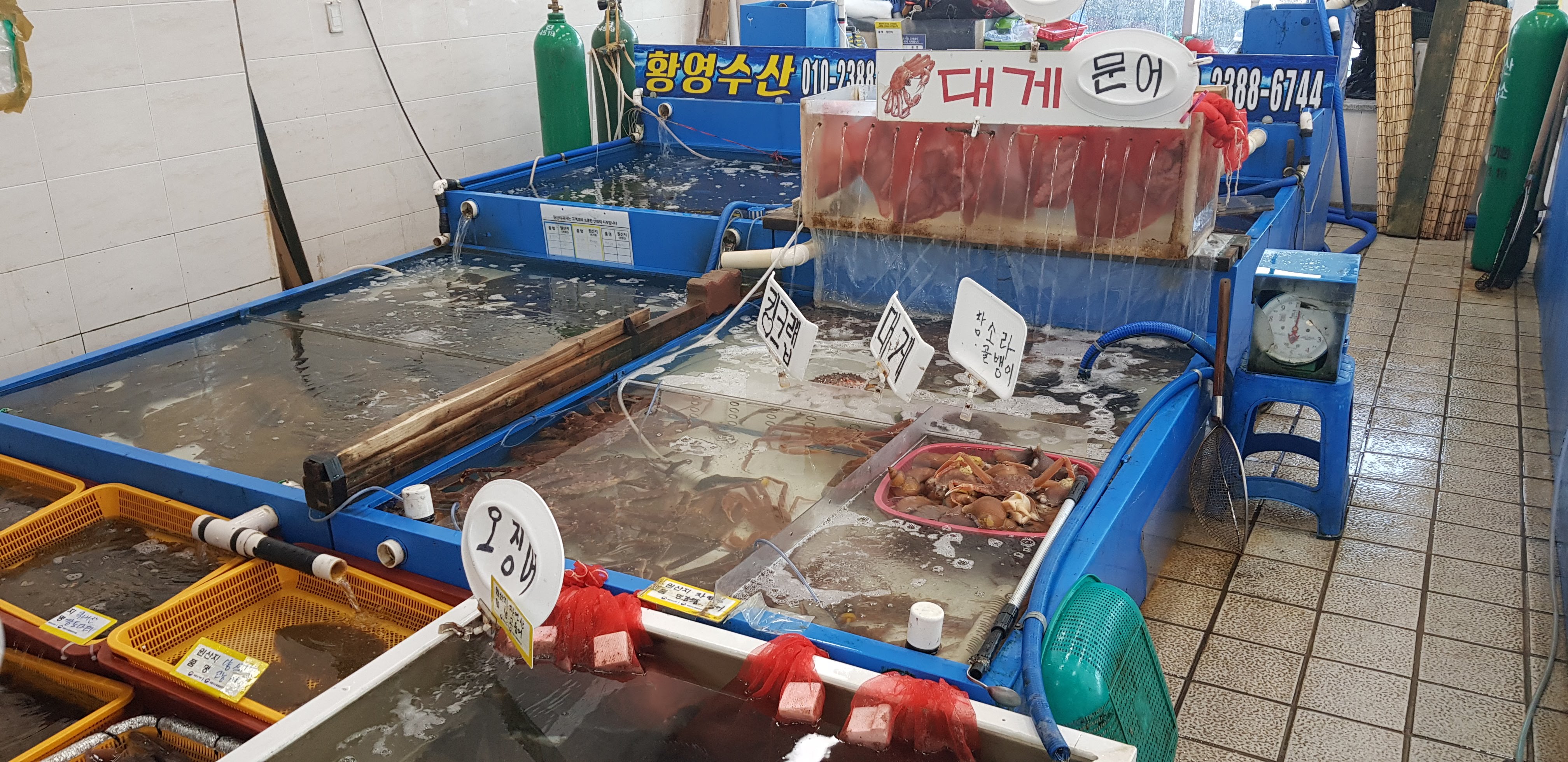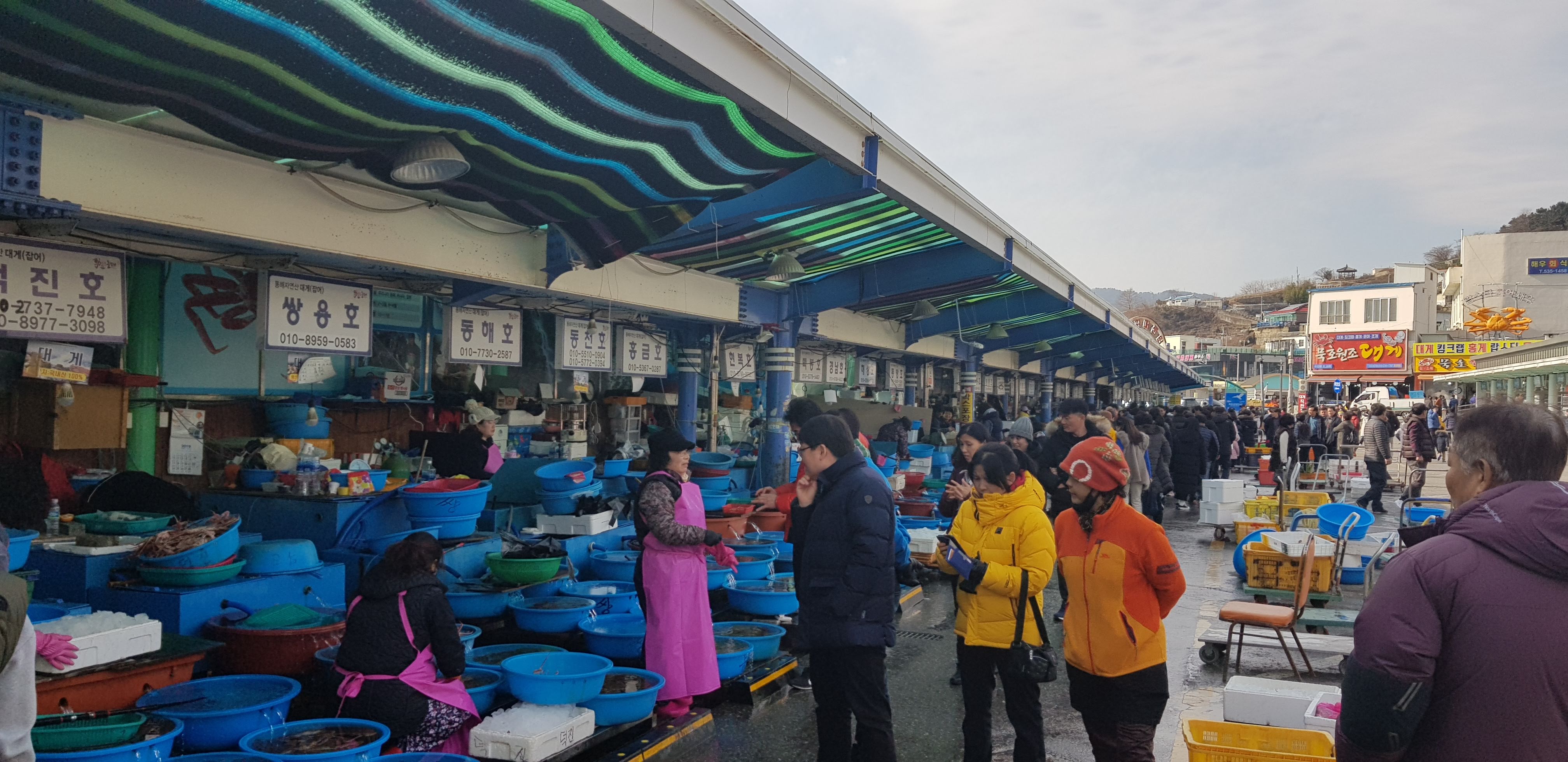 주차장에서 조금만 걸어가면 묵호항 활어판매센터가 나옵니다. 대게뿐만 아니라 다양한 수산물들이 저렴한 가격에 판매되고 있었습니다.