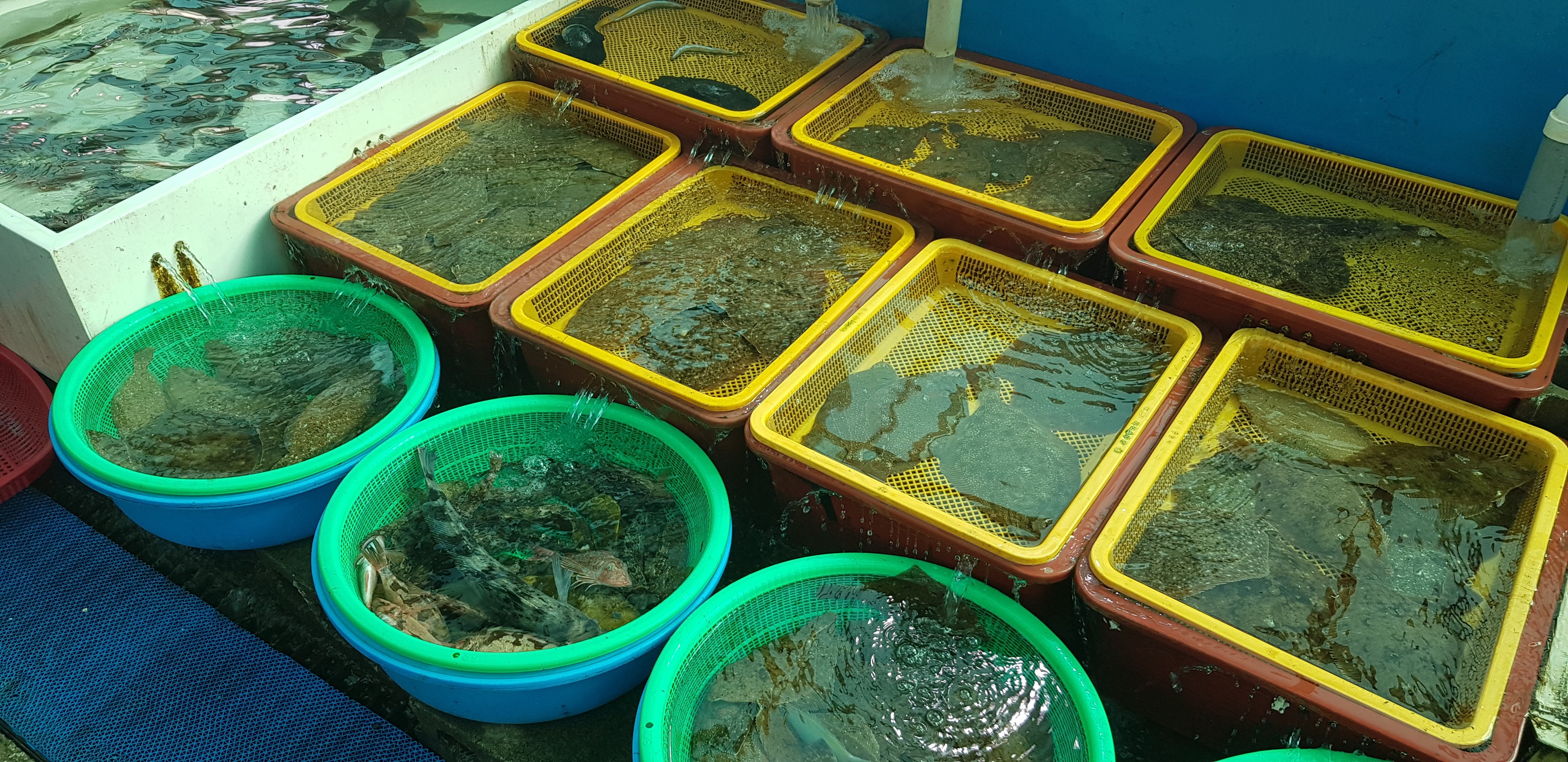 황영수산이라는 곳에서 횟감을 구입하고 바로 옆에 회를 떠주는 가게가 따로 있었습니다. 약간의 손질 비용을 지불하면 회를 맛있게 떠 줍니다. 신기했던건 회뜨는 기계가 있어서 몇몇 횟감은 기계에 넣으면 바로 손질이 되었습니다.