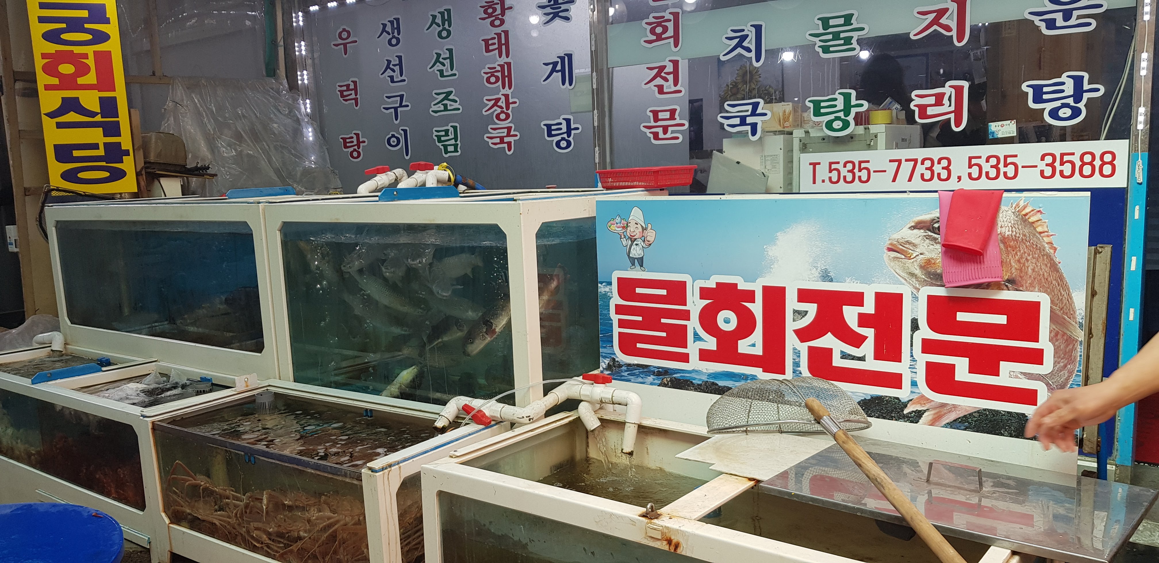제가 찾아갔던 식당은 시장에서 조금 걸어들어가야 있는 "용궁횟집"이었습니다.