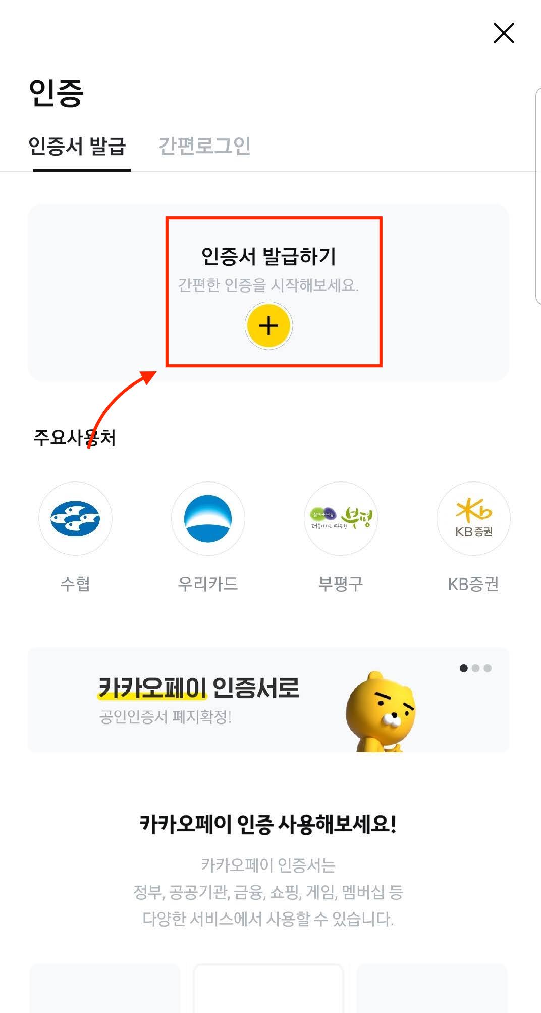 카카오페이 인증서 발급 방법