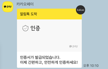 그리고 카카오톡에 인증서가 발급되었다는 알림톡이 옵니다.
