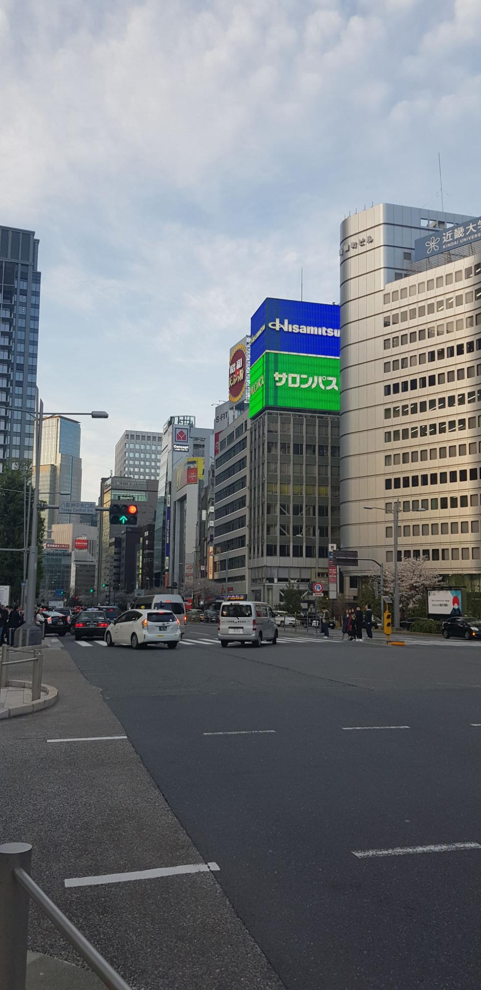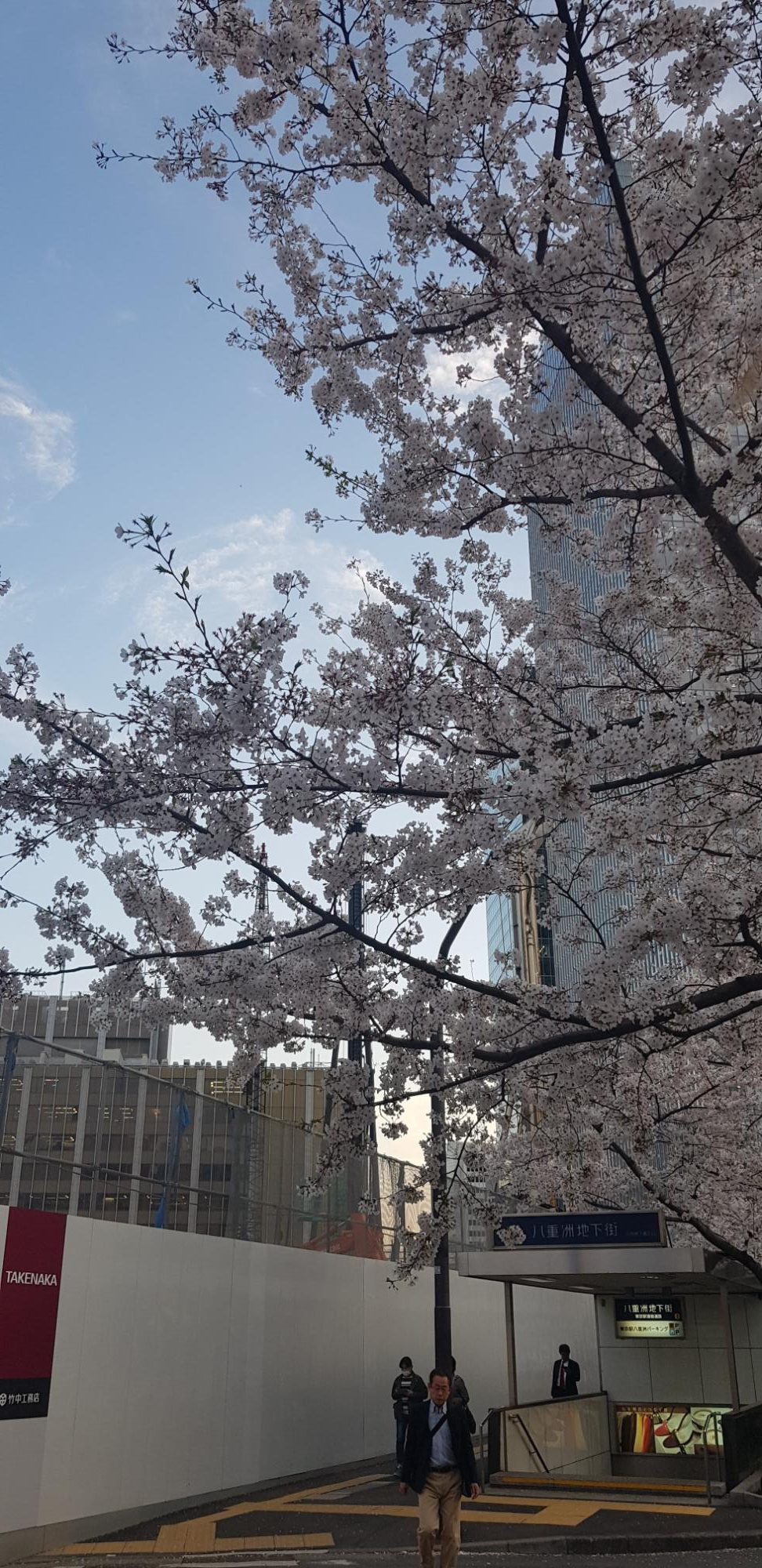 긴자로 걸어가는길. 일본임을 알려주듯 벚꽃이 활짝 피어있습니다. 올해는 벚꽃이 일주일 정도 빨리 피어서 꽃을 볼 수 없으면 어쩌다 걱정을 했는데 여전히 많이 피어있었습니다. 그 강력한 바람에도 말이죠.