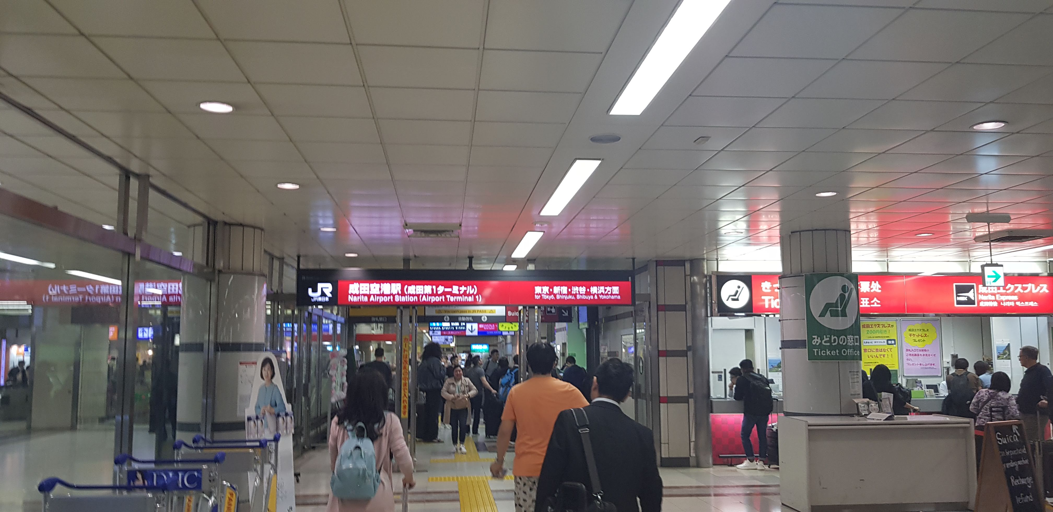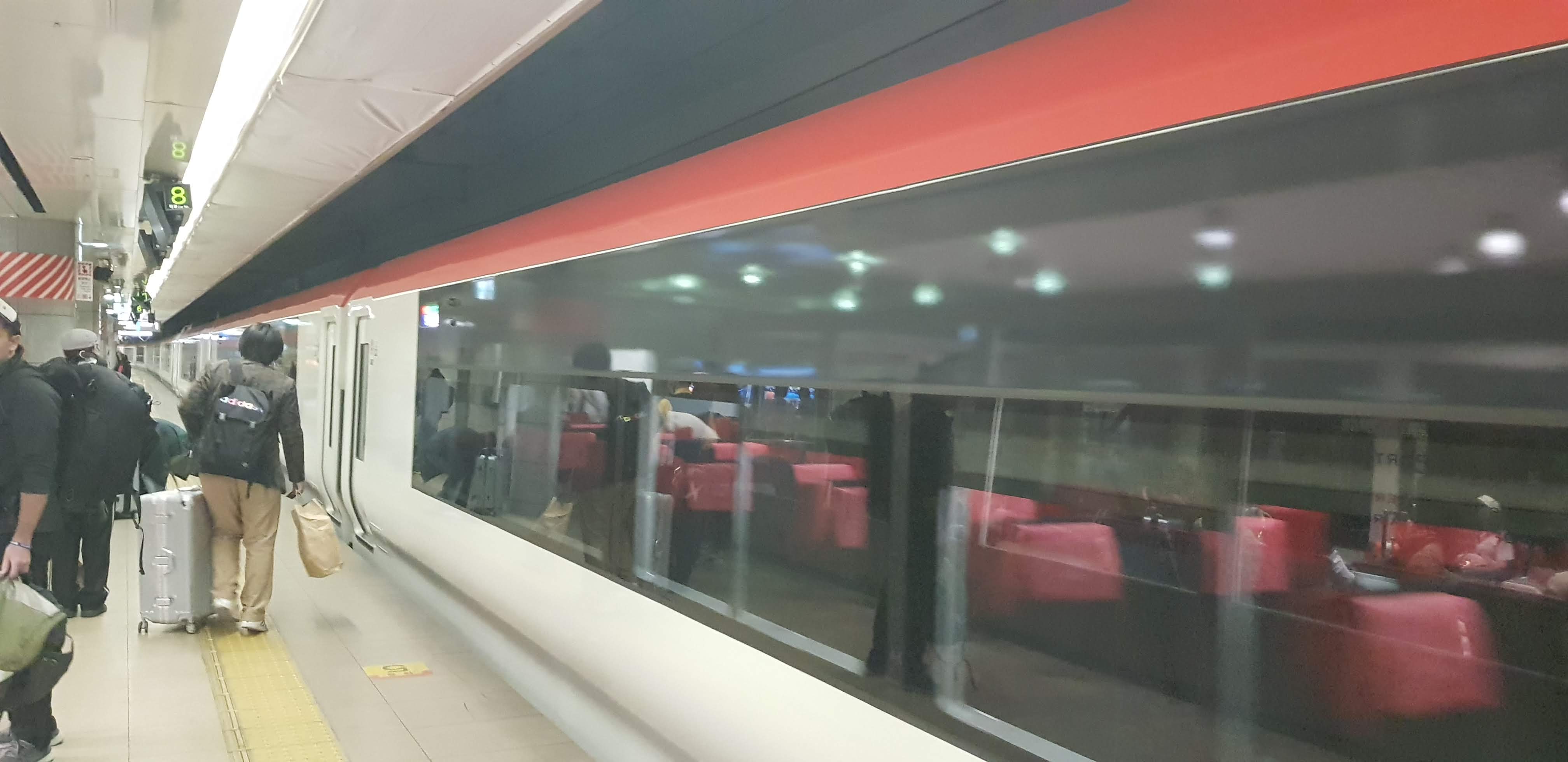 우리가 타야할 기차는 NEX. 나리타 익스프레스(Narita Express)의 약자라고 합니다. 그런데... 줄을 서고 있는 동안 기차 출발시간이 임박해버렸습니다. NEX 티켓은 출발시간 몇 분전까지만 판매한다고 합니다. 즉... 다음 열차를 타야합니다. 시간이 또 붕떠버렸습니다. ㅜㅜ