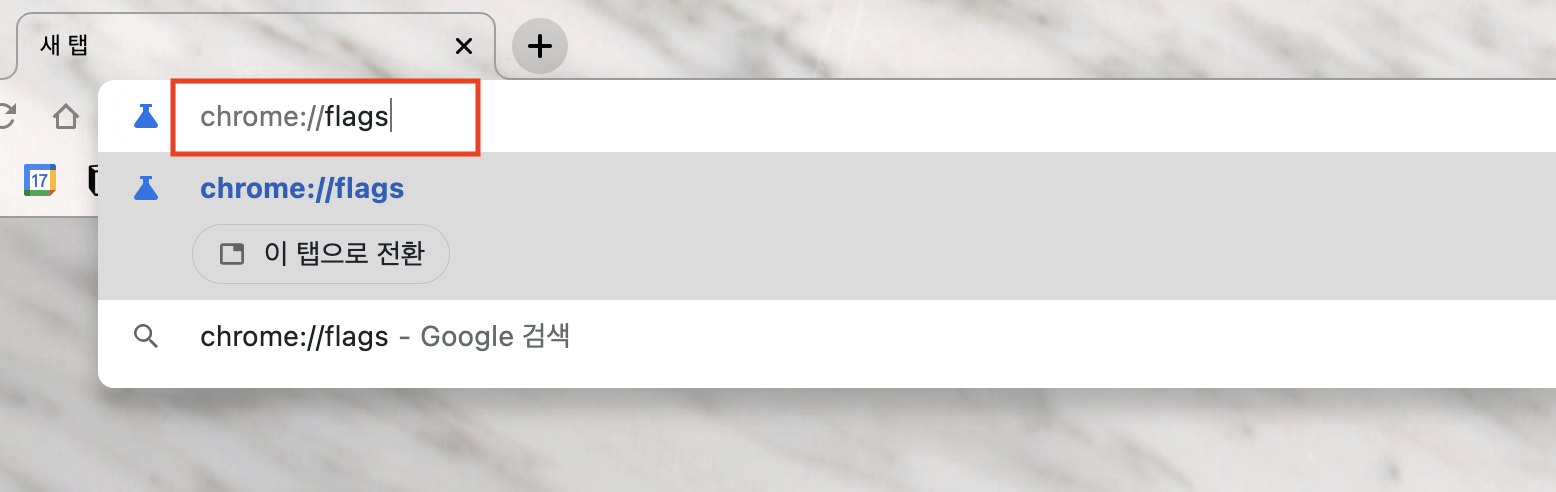 1. 설정을 위해 "chrome://flags" 페이지로 이동