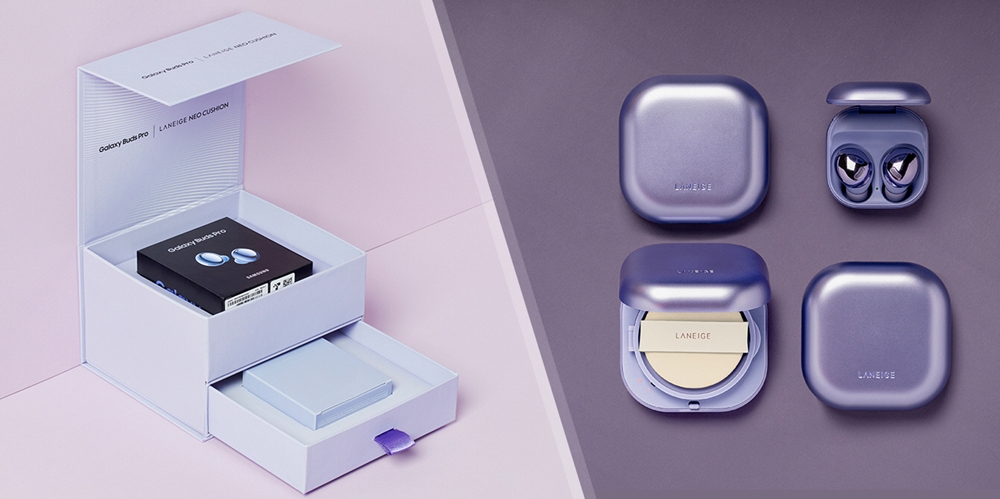 삼성전자와 아모레퍼시픽의 이번 콜라보레이션은 '갤럭시 버즈 프로'와 '네오 쿠션' 두 제품의 케이스 디자인이 둥근 사각형 모양으로 유사하다는데에 착안해 기획하게 되었다고 합니다.
