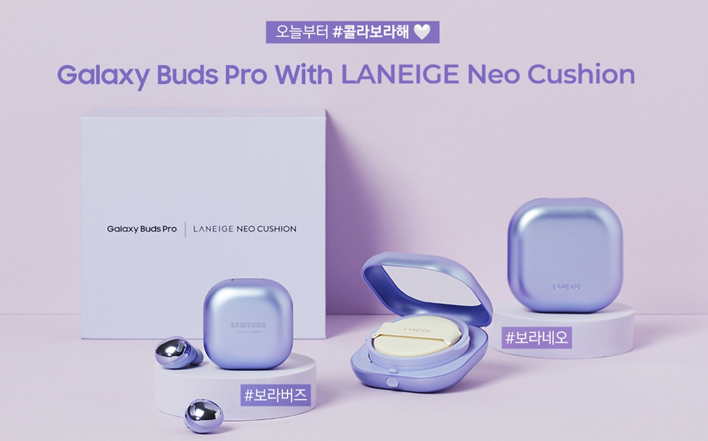삼성전자가 아모레퍼시픽과 콜라보레이션을 진행했습니다. 삼성전자의 블루투스 이어폰 제품인 '갤럭시 버즈 프로'와 라네즈 브랜드를 콜라보해서 '갤럭시 버즈 프로 with 라네즈 네오 쿠션 콜라보라해' 스페셜 패키지를 출시했습니다. 이름이 좀 기네요 ㅋㅋ