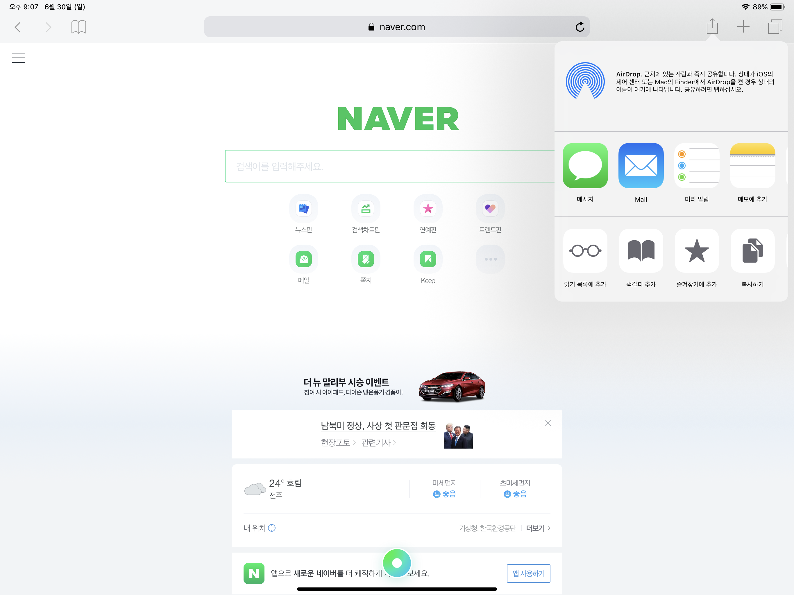 아이패드로 웹 페이지에 필기를 하고 싶으면 사파리 웹 브라우저의 PDF로 저장하기 기능을 이용하면 됩니다. 우선 사파리 웹 브라우저로 필기하고 싶은 웹 페이지를 열어줍니다.