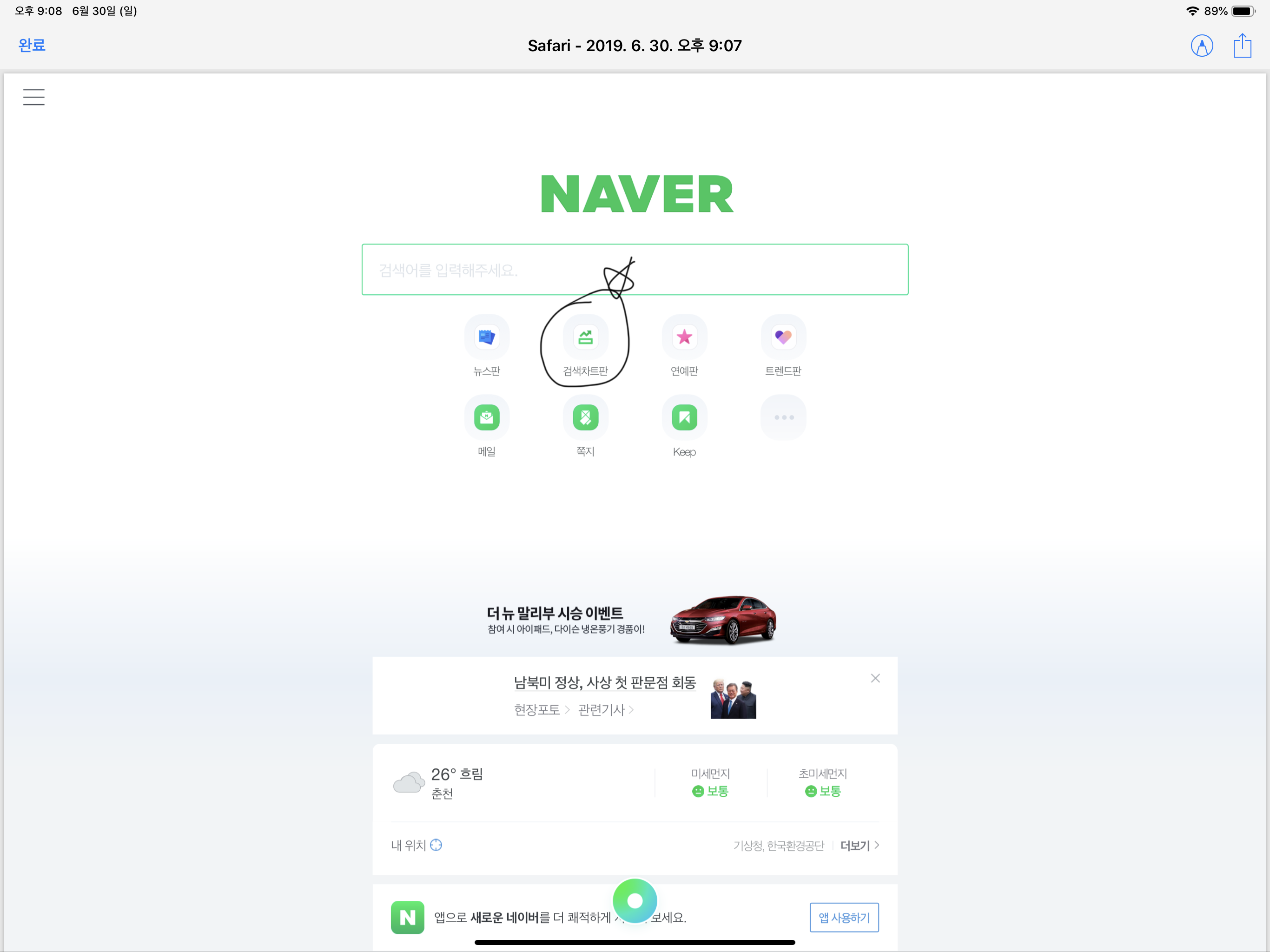 일단 네이버 메인 페이지에 필기를 해보겠습니다.