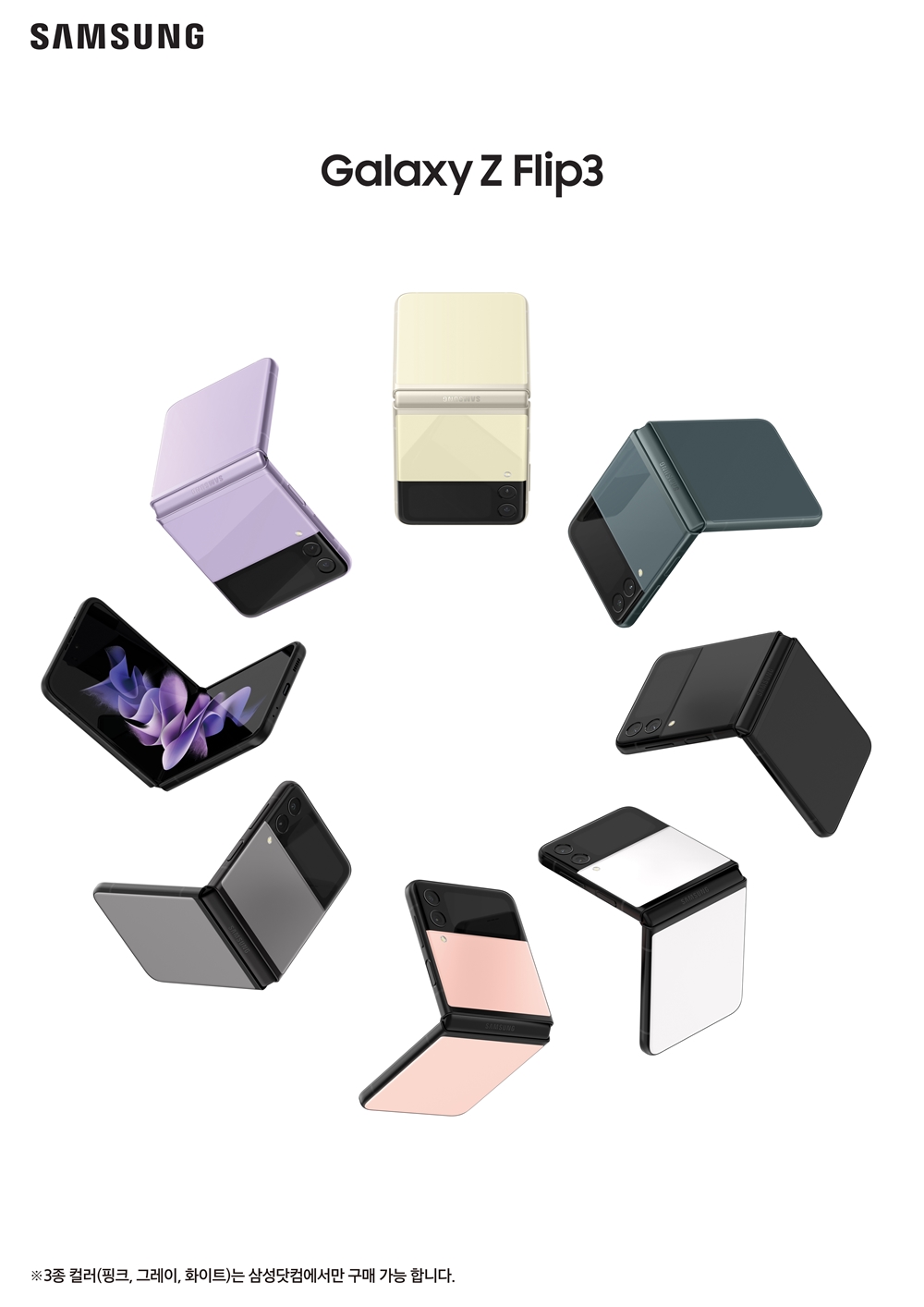 아무튼 '갤럭시Z플립3'는 '갤럭시Z폴드3'와 마찬가지로 8월 17일부터 8월 23일까지 사전 예약 판매에 들어갔습니다. 8월 27일 정식 출시될 예정이며, 크림, 그린, 라벤더, 팬텀 블랙, 그레이, 핑크, 화이트 등 7가지 색상으로 출시될 예정입니다.