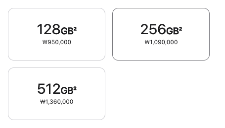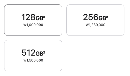 | 저장공간 | 128GB / 256GB / 512GB | |
