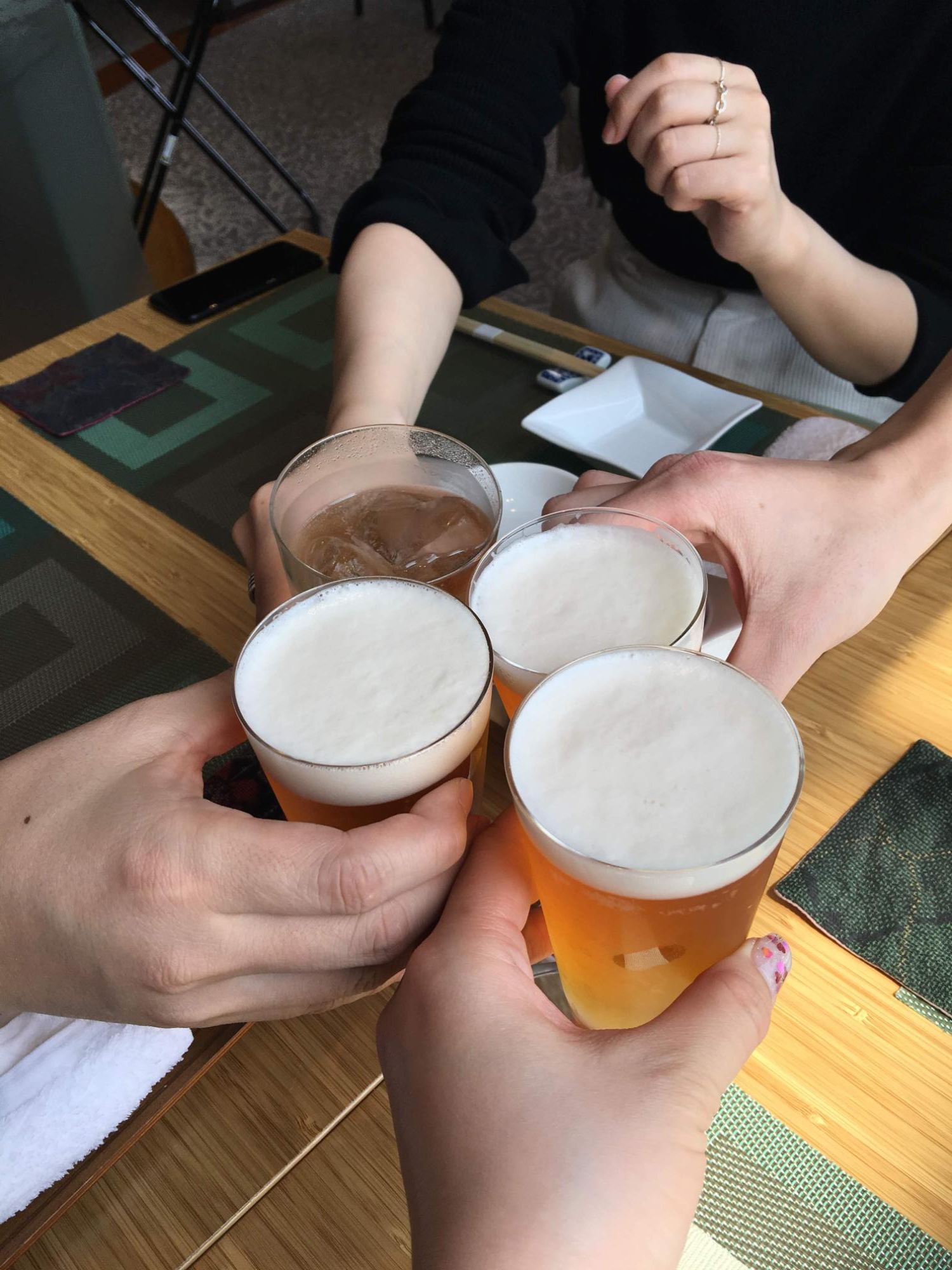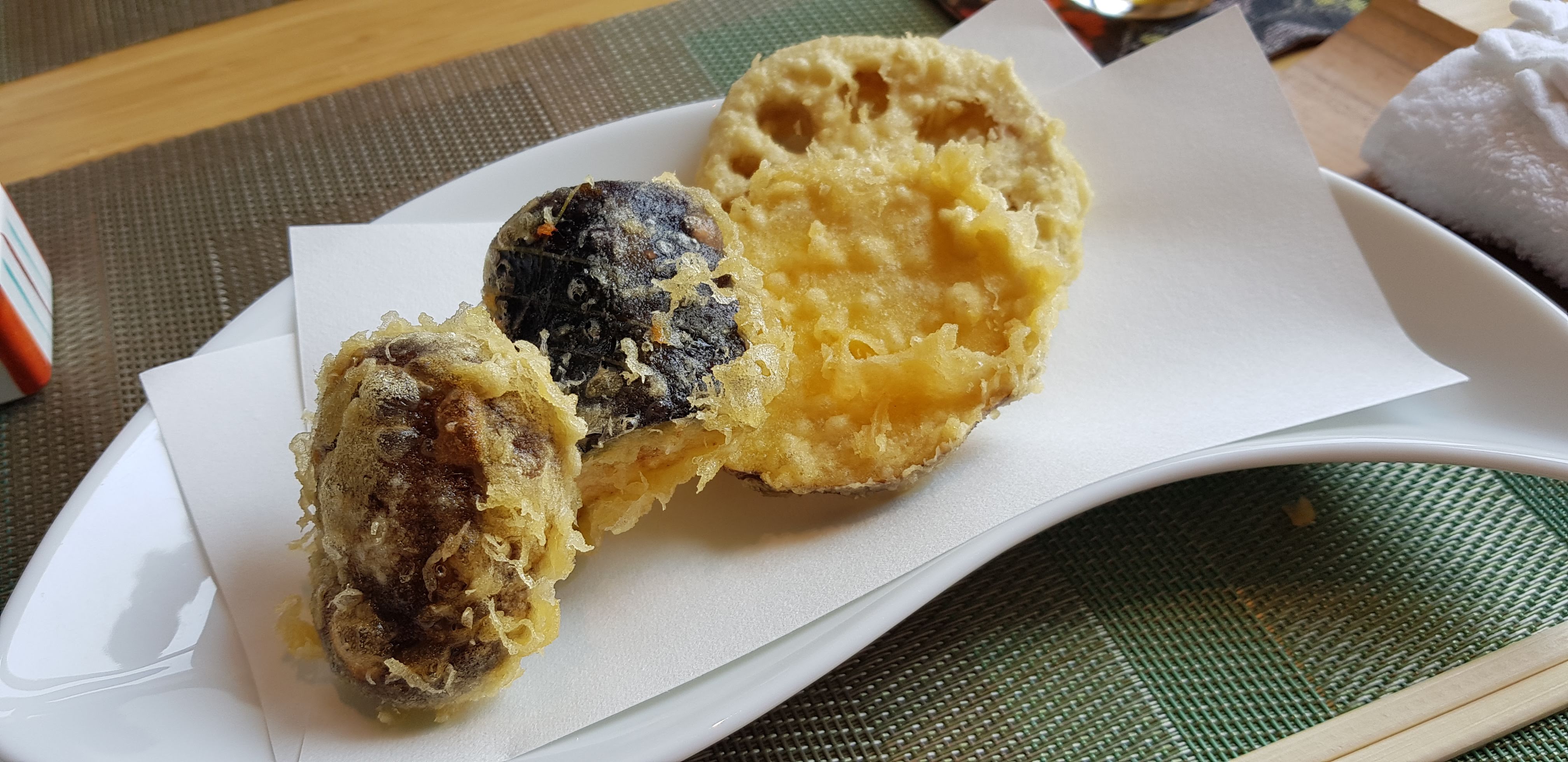 두 번재로는 가지와 버섯, 연근을 튀긴 음식이 나왔습니다. 해산물이나 고기를 튀긴건 아니지만 맛있었습니다. 벌써 맥주가 저렇게나 줄어있네요.