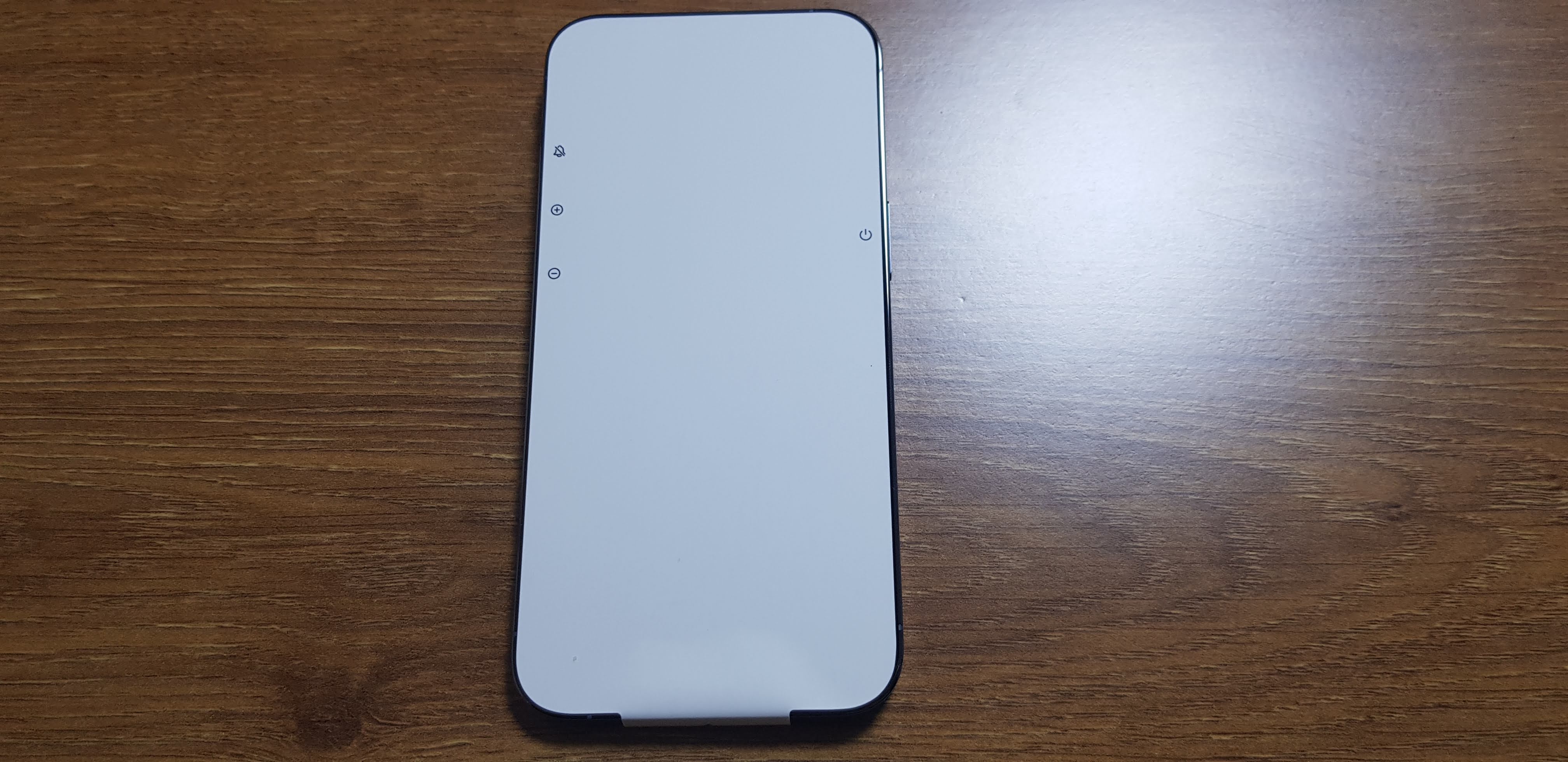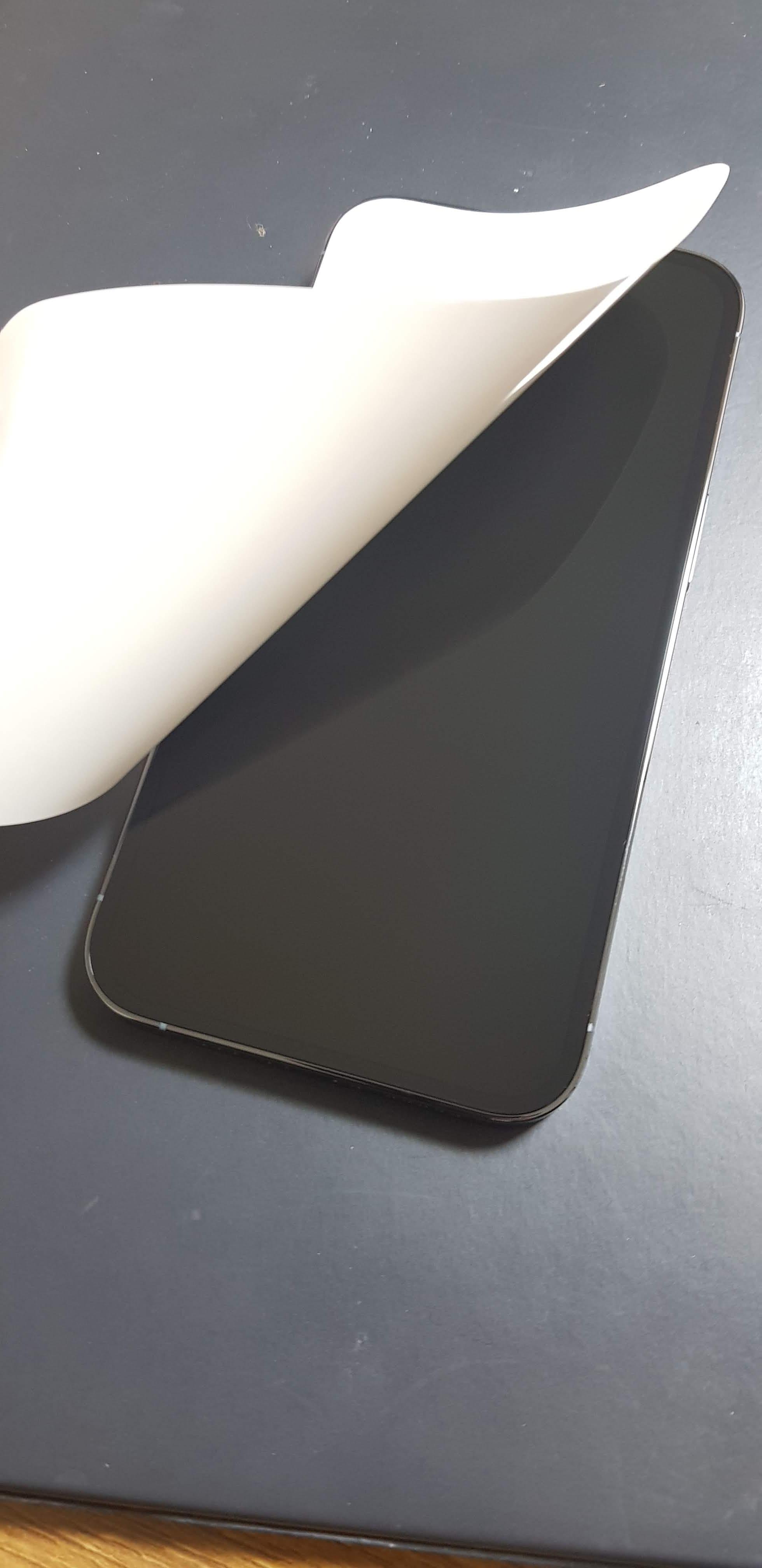 디스플레이는 코팅된 종이 재질로 덮여있습니다. 과감하게 벗겨보면 깨끗한 화면이 나옵니다. 그리고 숨겨져 있던 노치도 드러나네요. 이번 아이폰은 전작과 비교해서 노치가 더 작아졌습니다.