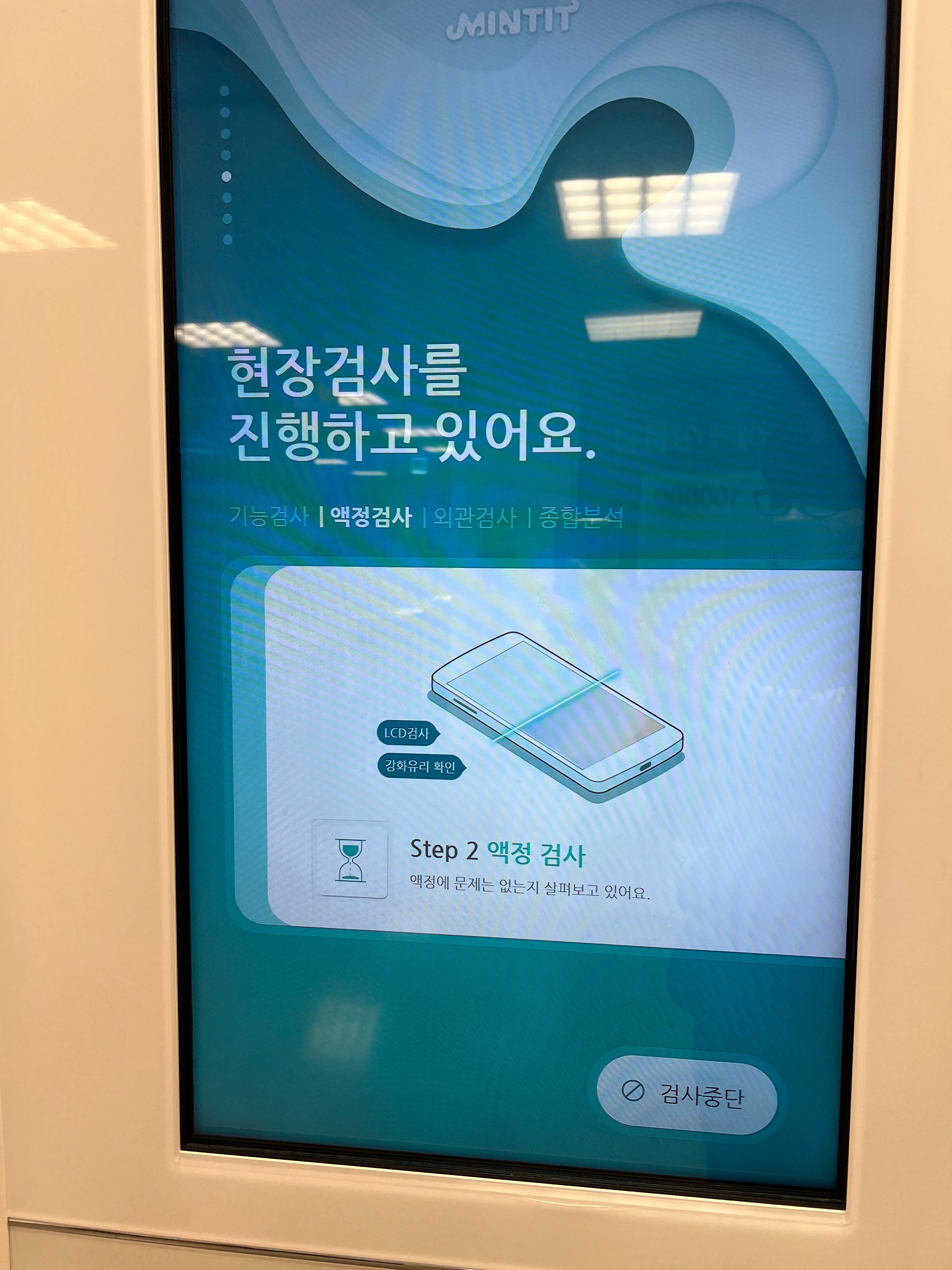 자 이제 민팃 ATM 기기가 있는 곳으로 갑니다. 가서 민팃을 하기 전에 판매할 스마트폰을 아주 깨끗한 상태로 박박 닦아줍니다. 민팃 ATM이 내부에 장착된 렌즈로 외관을 검사하는데 스크래치가 아닌 일반 얼룩이 기기의 등급을 하락 시킬 수도 있기 때문입니다.