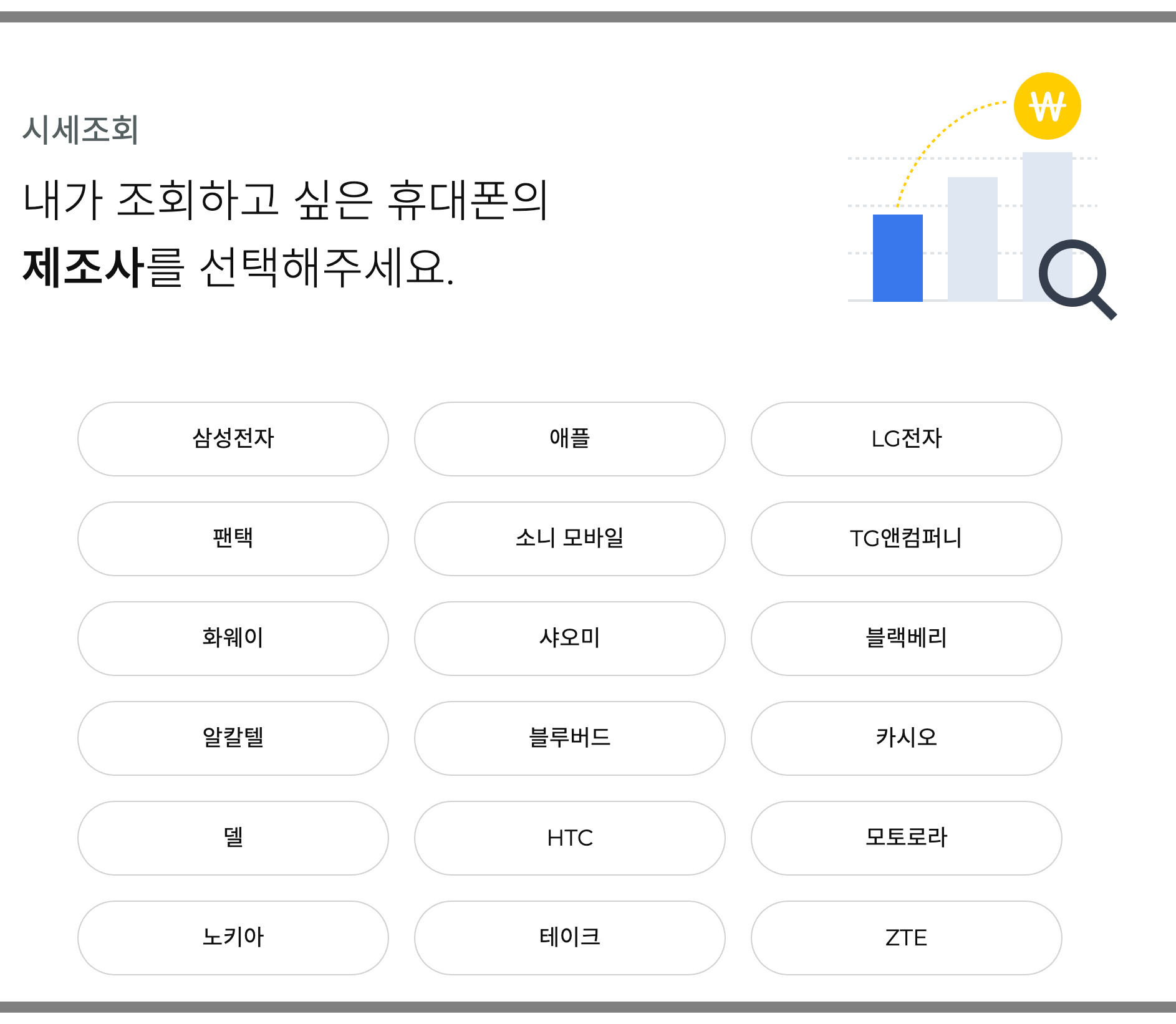 민팃에서는 판매하고 싶은 중고폰의 등급에 따른 시세를 조회할 수 있는 페이지를 제공하고 있습니다. (민팃 시세조회 페이지)