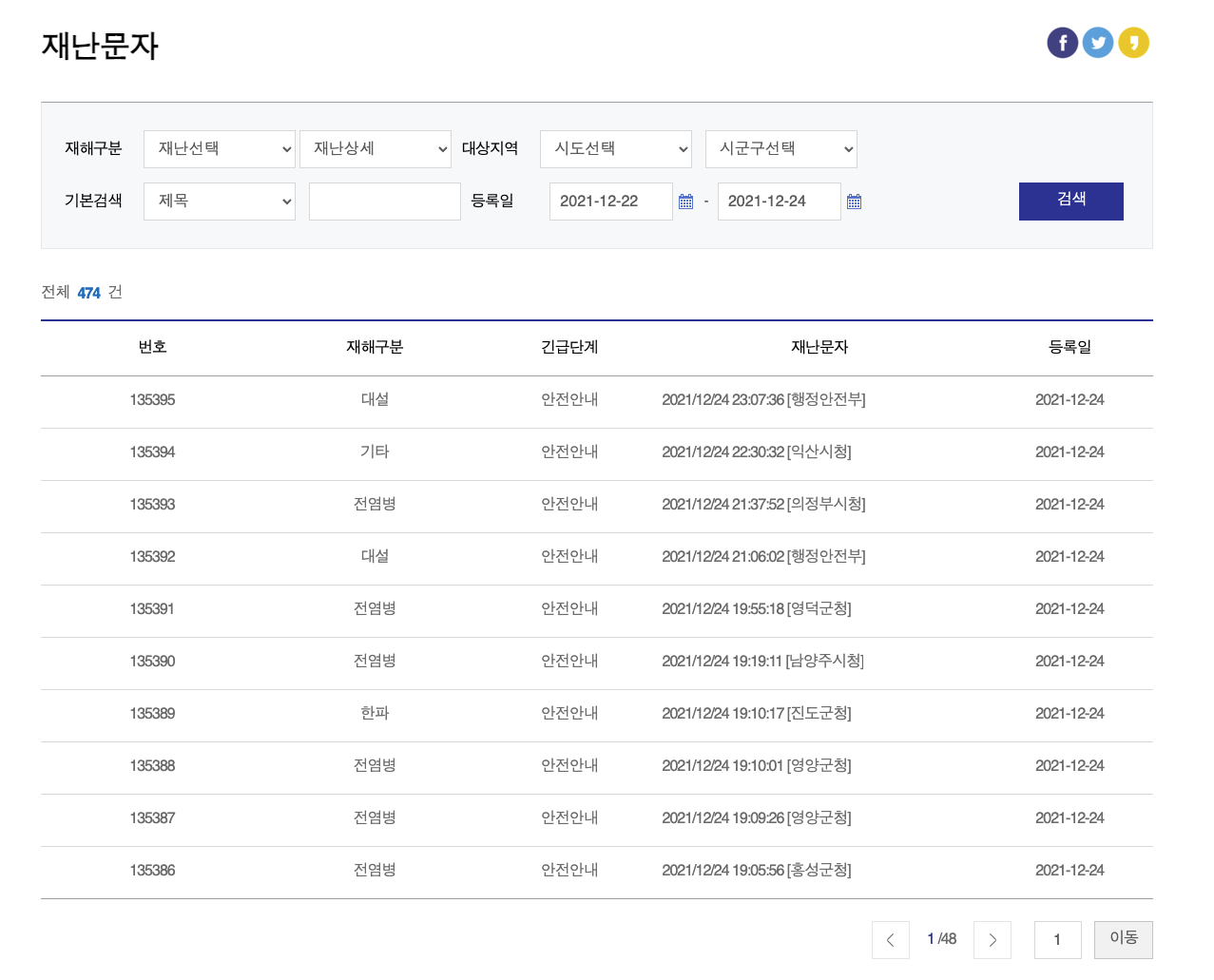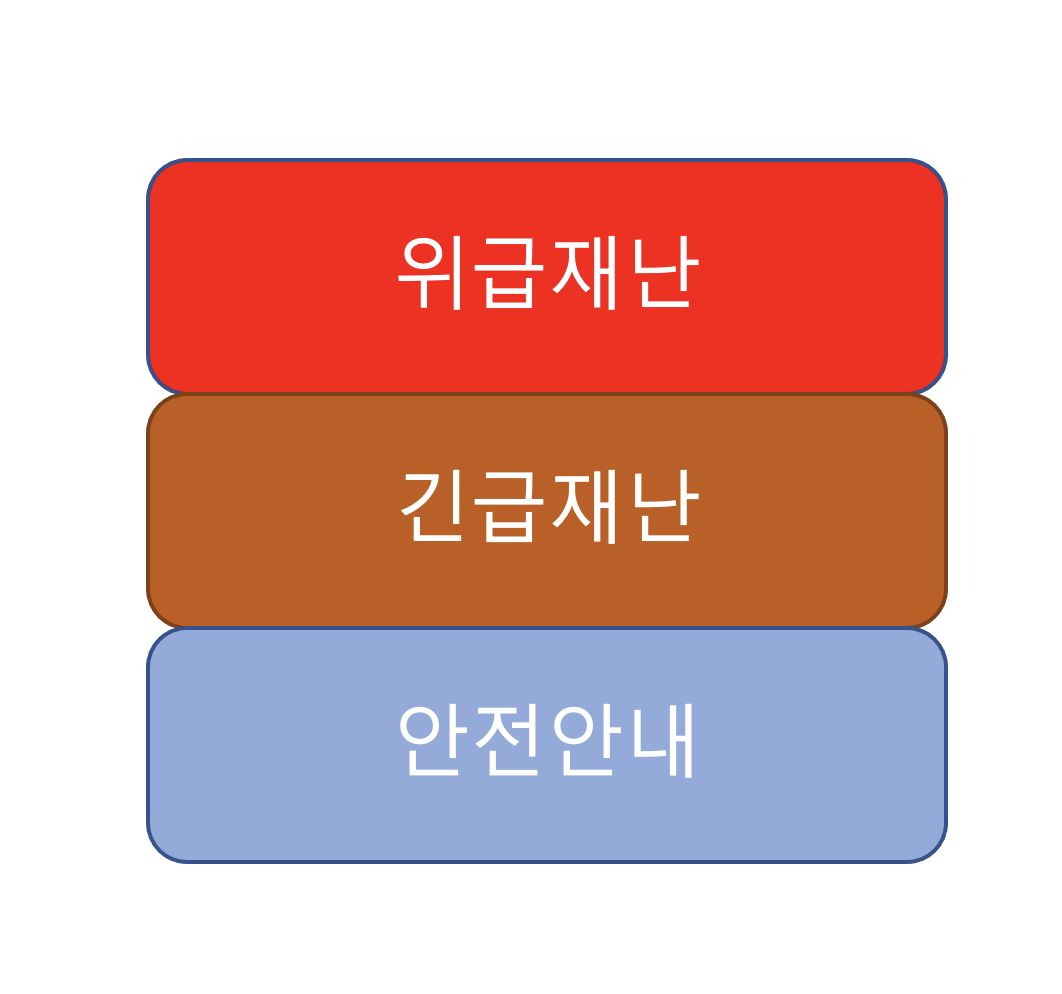 현재 대한민국에서는 재난문자를 3단계로 관리하고 있습니다.