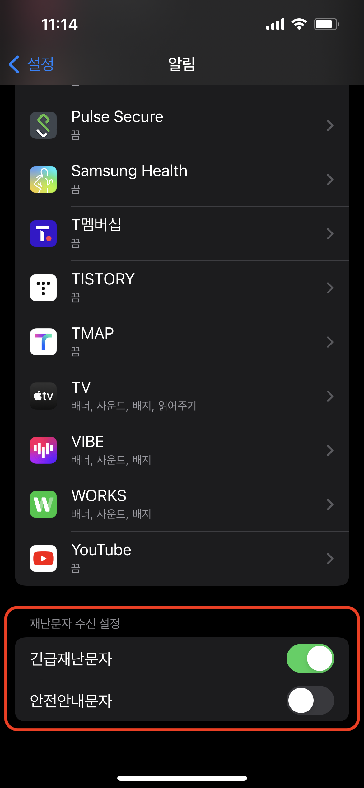 위에서 언급했던 것처럼 안전알림문자와 긴급재난문자의 알림은 끌 수 가 있습니다. 아이폰에서 재난문자 알림을 끄는 방법에 대해 알아보겠습니다.