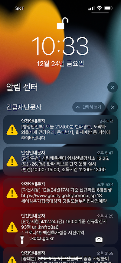 아이폰으로 폰을 바꾸고 느낀 불편함 중 하나는 폰을 사용하다가 긴급 재난 문자가 오면 현재 사용중인 앱 화면을 중단 시켜버리는 다는 점이었습니다. 다행히 긴급재난 문자 중 긴급재난 문자와 안전 안내 문자는 수신을 거부할 수 있습니다. 이번 포스트에서는 아이폰에서 긴급재난문자와 안전안내문자 알림을 끄는 방법에 대해 알아보겠습니다.