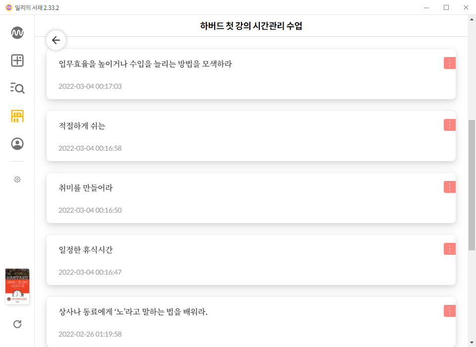 저는 태블릿으로 책을 읽으면서 밑줄도 치고 메모도 해놓은 다음 윈도우 PC에서 정리한 메모와 하이라이트를 다시한번 정리하면서 책을 한번 더 읽습니다. 틈틈히 기록한 메모들을 정리하기엔 역시나 PC가 더 좋더라고요.