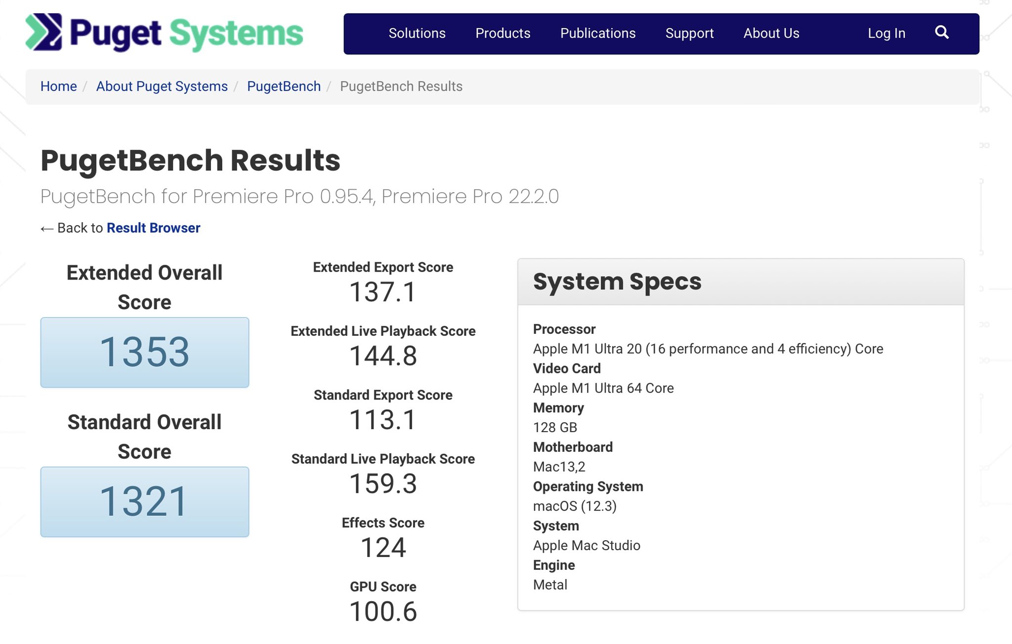 IT 트위터리안 Vadim Yuryev은 트위터에 일부 유출된 M1 Ultra 벤치 점수를 공개했습니다. PugetBench 프리미어 프로 점수가 공개되었는데요. 라이젠 스레드리퍼 3960X 24코어 프로세서와 엔비디아의 GeForce GTX 3090으로 구성된 시스템과 비교해서 더 높은 점수를 얻었다고 합니다.