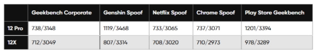 실제 샤오미12 프로에서 긱벤치나 '원신' 등 모바일 게임 앱을 실행하는 경우, 넷플릭스나 크롬 브라우저 같은 앱에 비해 싱글코어 점수가 최대 50%까지 높게 나오는 것으로 나타났습니다.