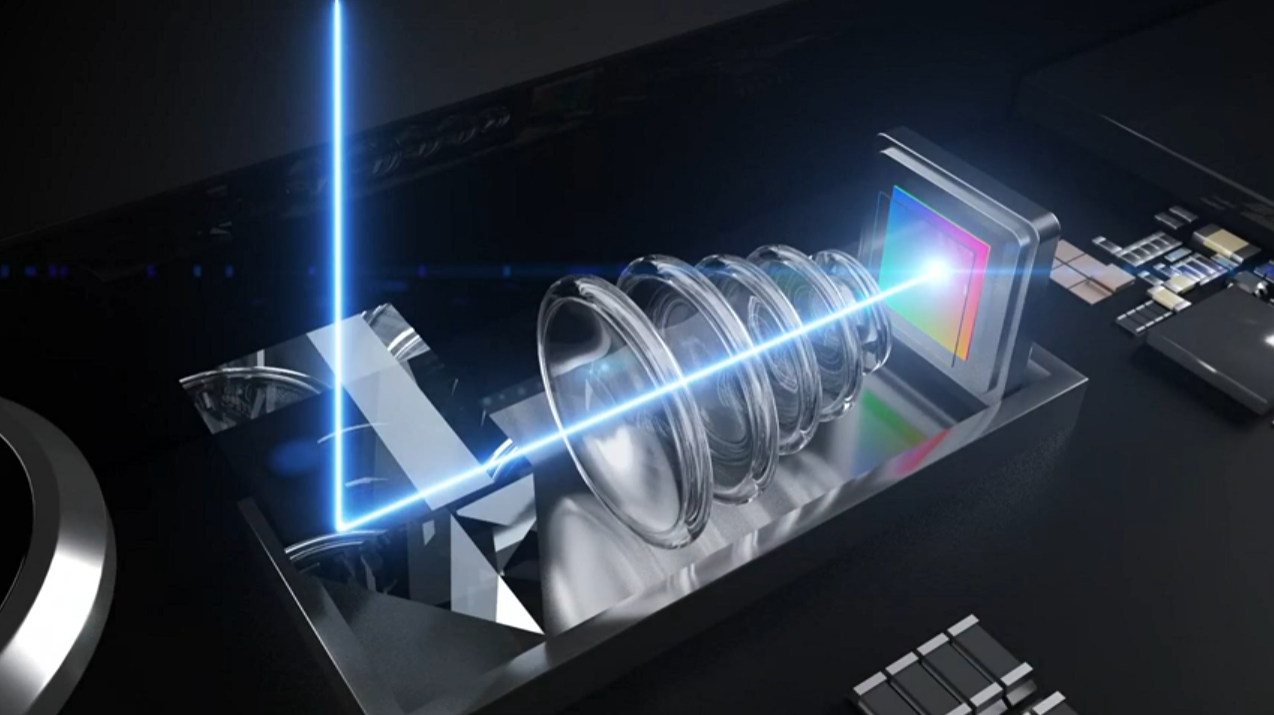 폴디드 카메라는 빛이 들어오는 통로를 잠망경처럼 굴절시켜서 초점거리를 확보하는 카메라 기술입니다. 렌즈와 이미지센서를 가로로 배치해 초점거리를 확보하기 때문에 카메라 모듈을 얇게 만들더라도 광학 줌 성능을 충분히 확보할 수 있습니다.