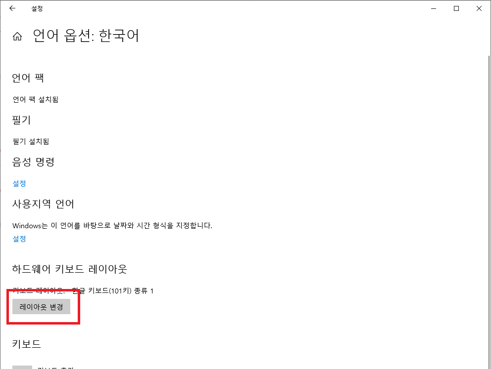 윈도우10 한영키 설정 - 키보드 레이아웃 변경 방법