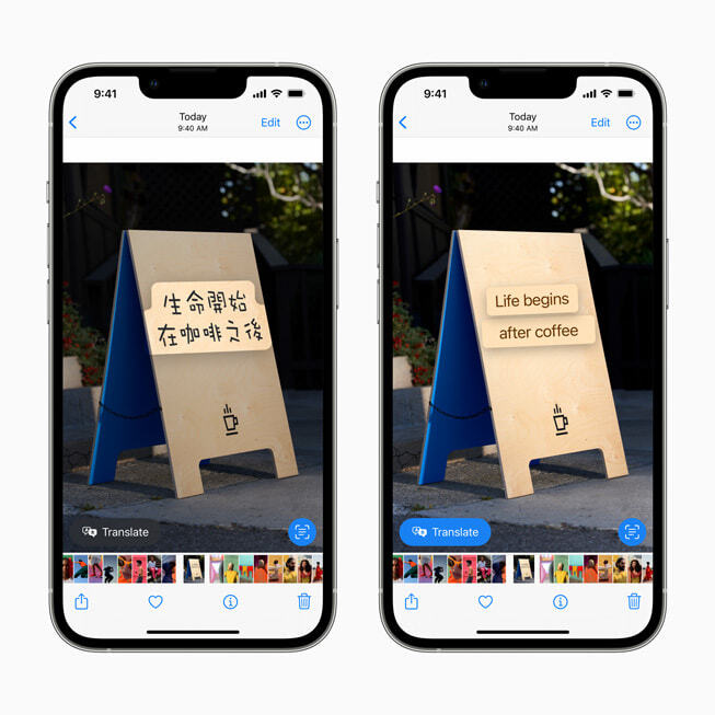 라이브 텍스트를 이용한 번역 (출처 : Apple)