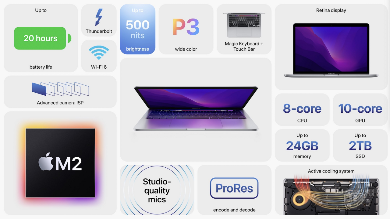 M2 칩이 탑재된 13인치 맥북 프로도 공개되었습니다.