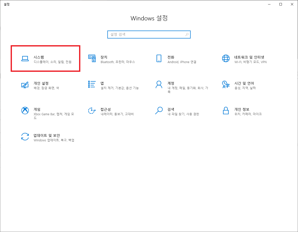 제 경우 문제의 원인은 간단히 해결 할 수 있었습니다. 일단 윈도우 설정으로 가서 '시스템' 항목을 선택합니다.