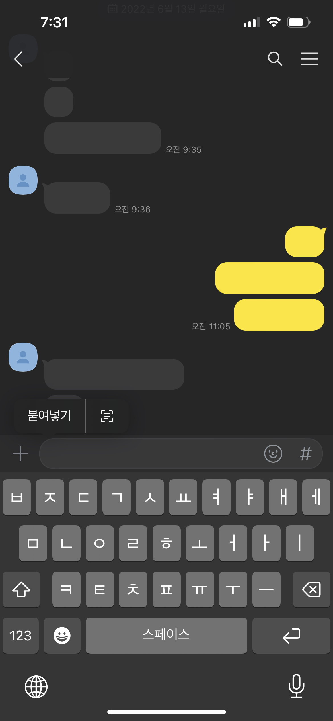 복사하기 버튼을 누르면 곰인형만 클립보드에 복사가 되고 다른 앱에서 붙여넣기를 이용해 사용할 수 있습니다. 예를 들어 카카오톡 대화창에 '붙여넣기'를 통해 곰인형 부분만 전송할 수 있습니다.