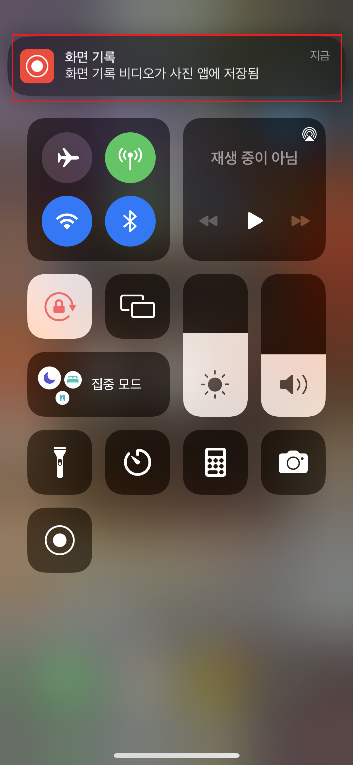 제어센터에서 화면기록 버튼을 다시 누르면 화면 녹화를 끝낼 수 있습니다.