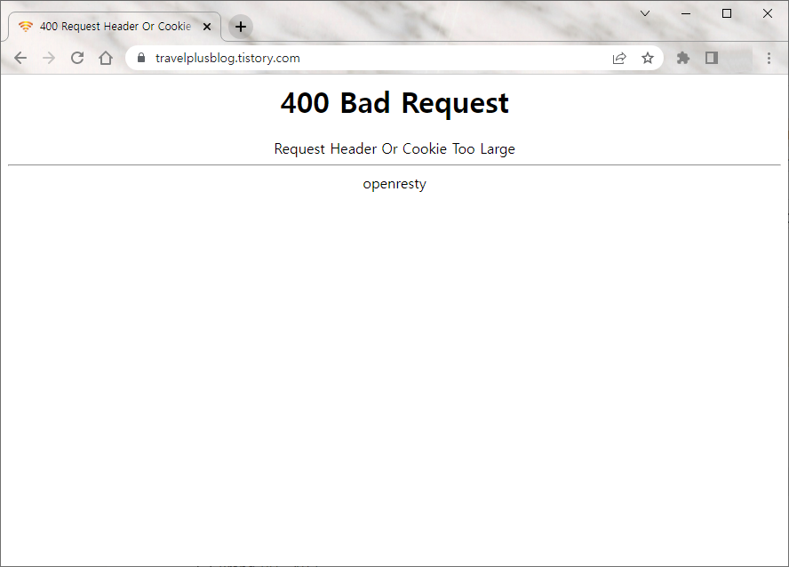 어느날 갑자기 크롬에서 티스토리 블로그에 접속할 경우 '400 Bad Request' 에러가 발생했다.