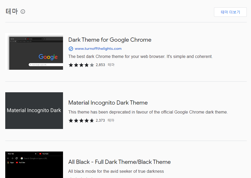 기본 앱 설정 변경을 이용한 다크모드 적용 방법 말고 다른 방법도 있습니다. 크롬의 확장 프로그램 중 다크모드 확장 프로그램을 이용해서 크롬의 테마를 변경할 수 있습니다.