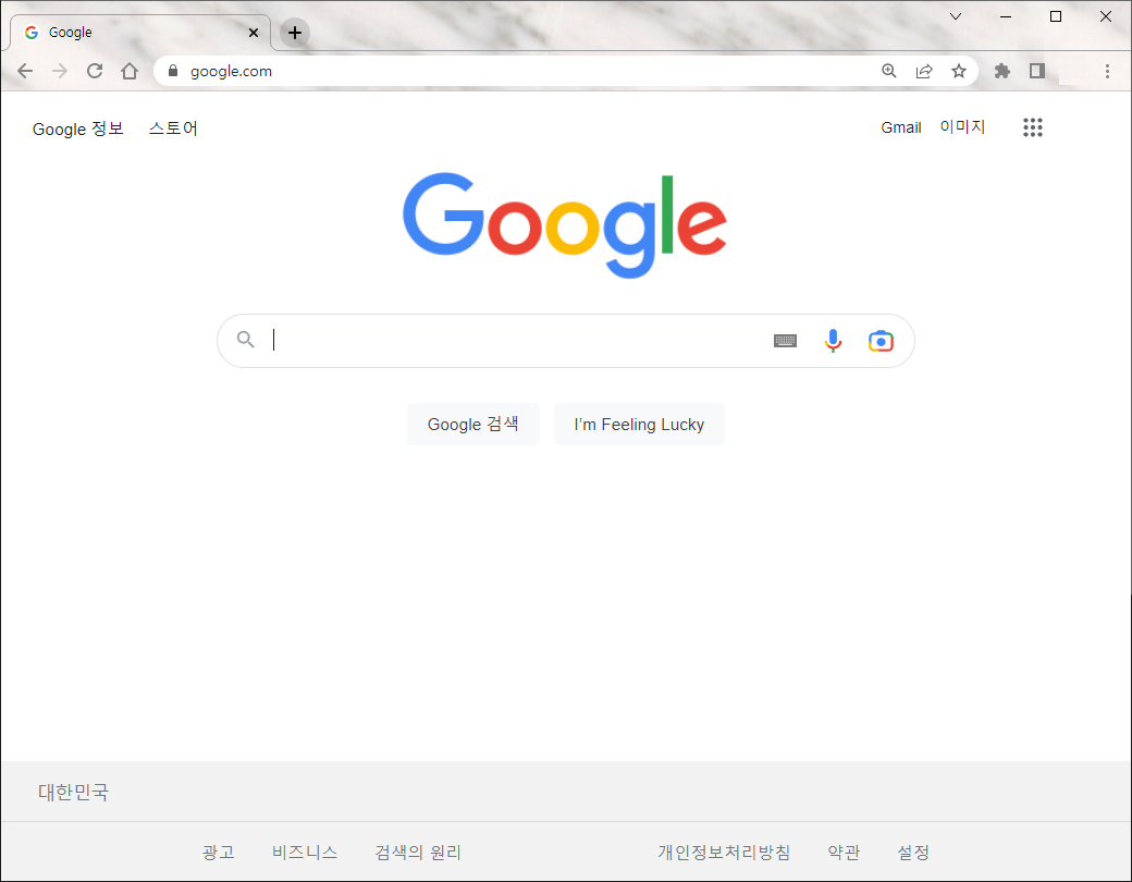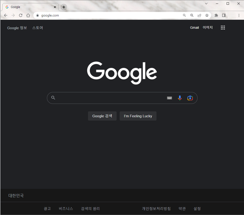 구글 창을 띄우면 이렇게 생겼는데요. 이 화면에 다크모드가 적용되도록 설정을 바꿔보겠습니다.