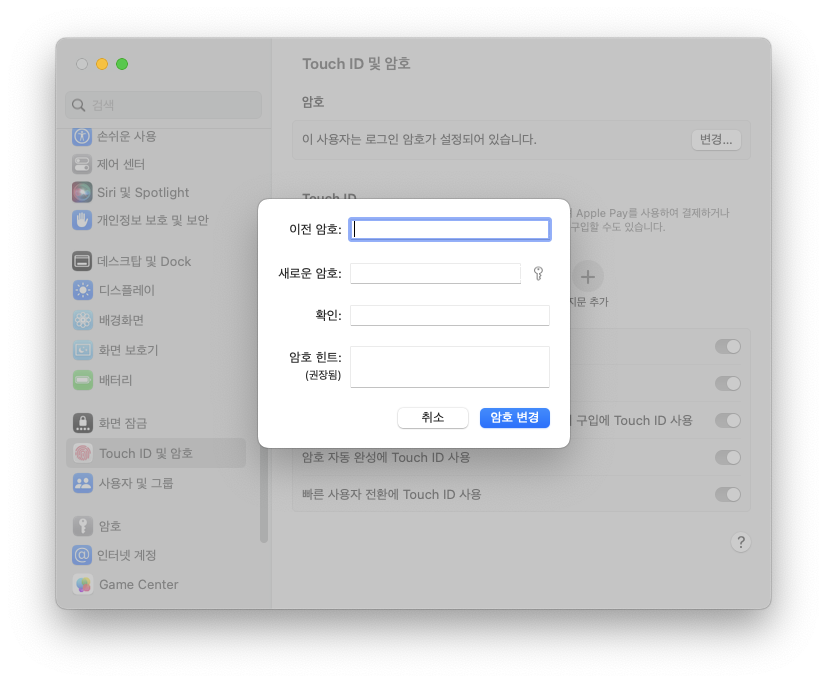 맥북 로그인 비밀번호(암호) 변경 방법
