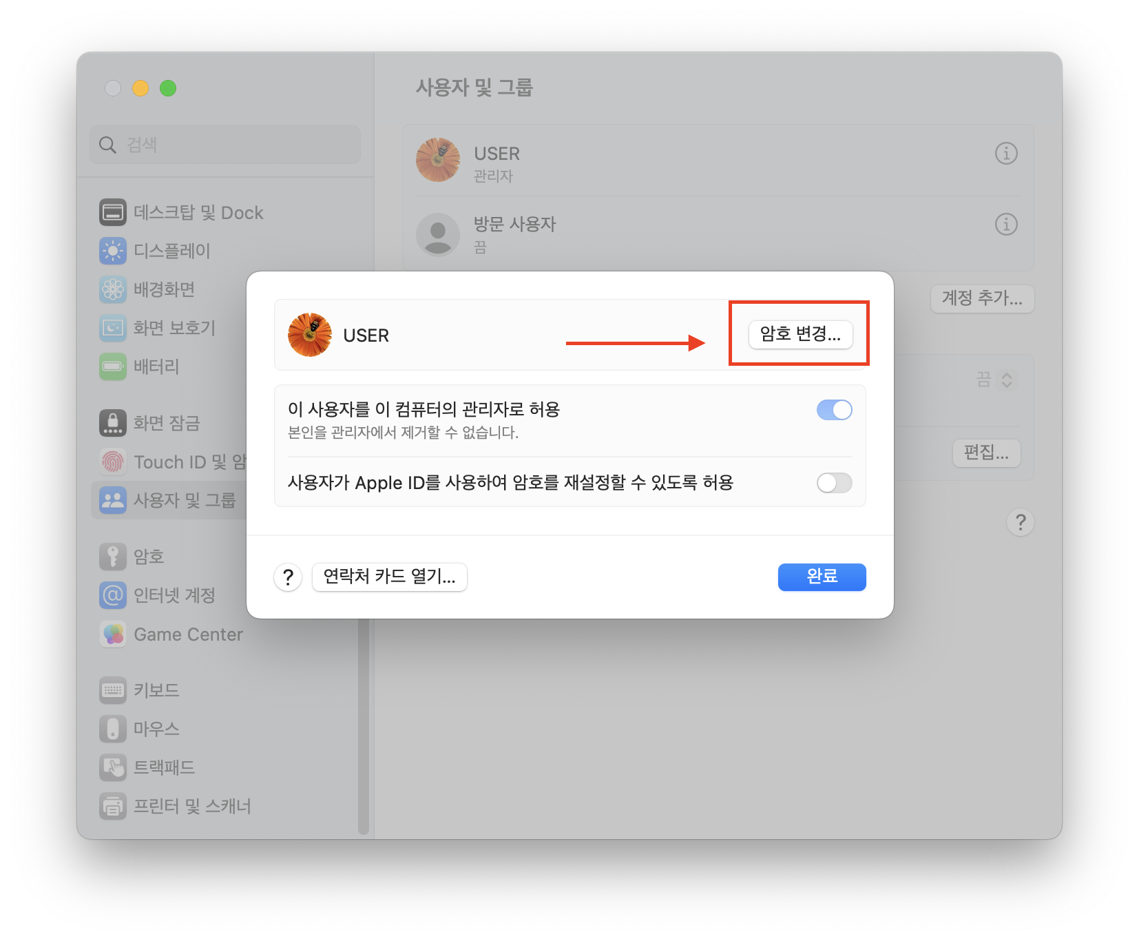 맥북 로그인 비밀번호(암호) 변경 방법