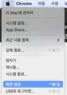 맥북 화면 좌측 상단에 있는 애플 아이콘을 클릭하면 '화면 잠금' 메뉴를 찾아볼 수 있다. 혹은 [control] + [cmd] + [Q] 버튼을 눌러 화면 잠금을 실행할 수 있다.
