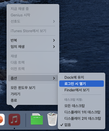 맥북 시작 프로그램 설정 : 독(Dock) - 로그인 시 열기
