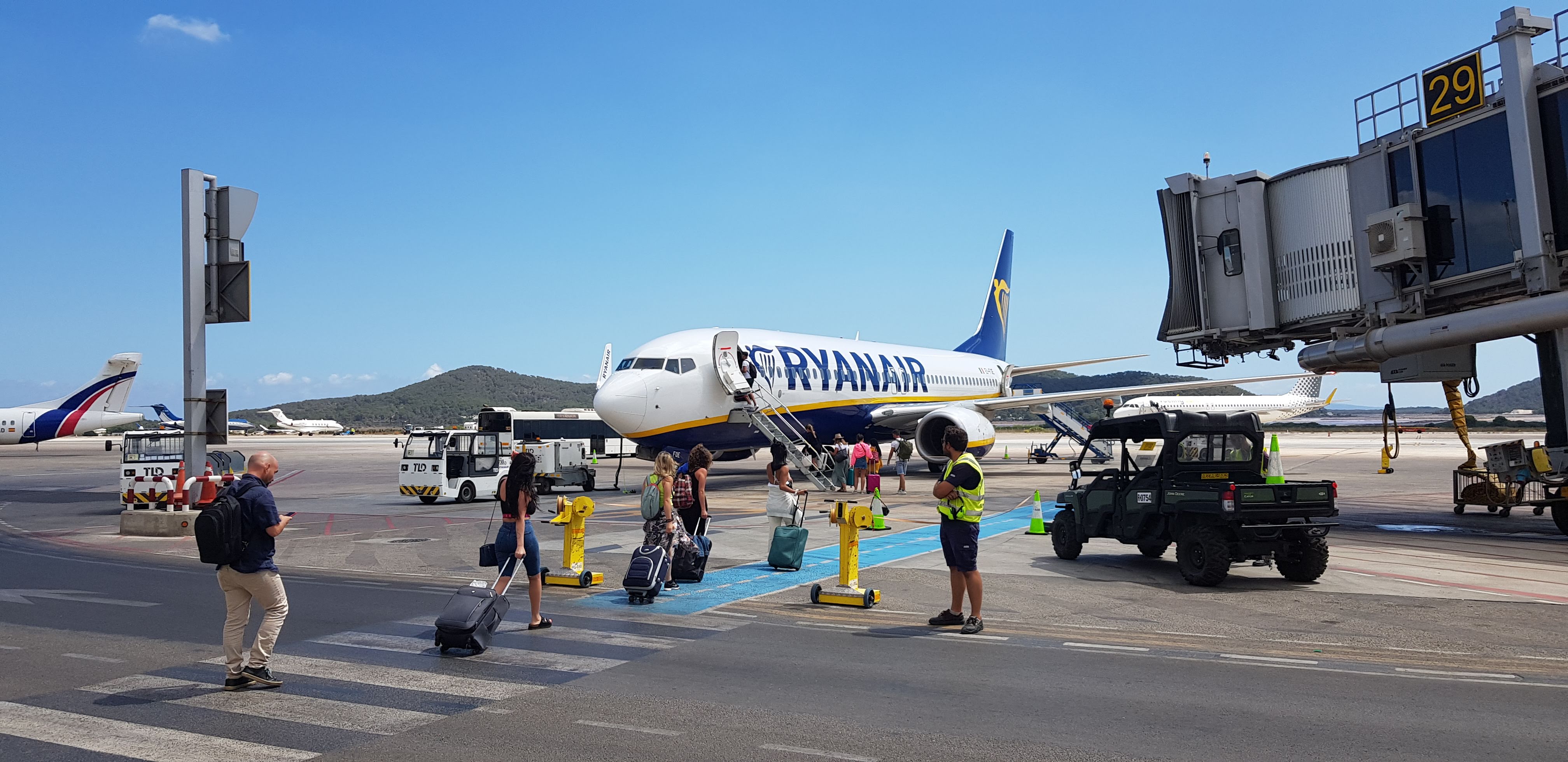 이비자에서 마드리드로 우리를 데려다줄 "RYANAIR"에서 탑승 수속을 진행했습니다.