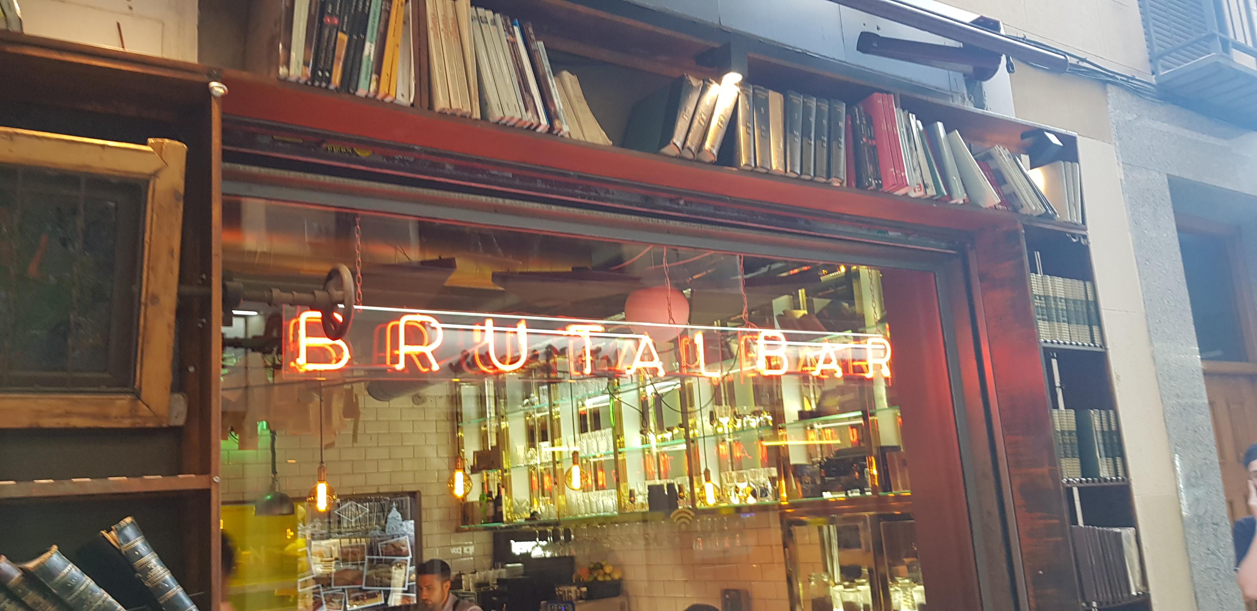 해가 넘어가서 어두워지고 있었는데요. "BRUTAL BAR"라는 네온 사인이 우리를 맞이해줬습니다.