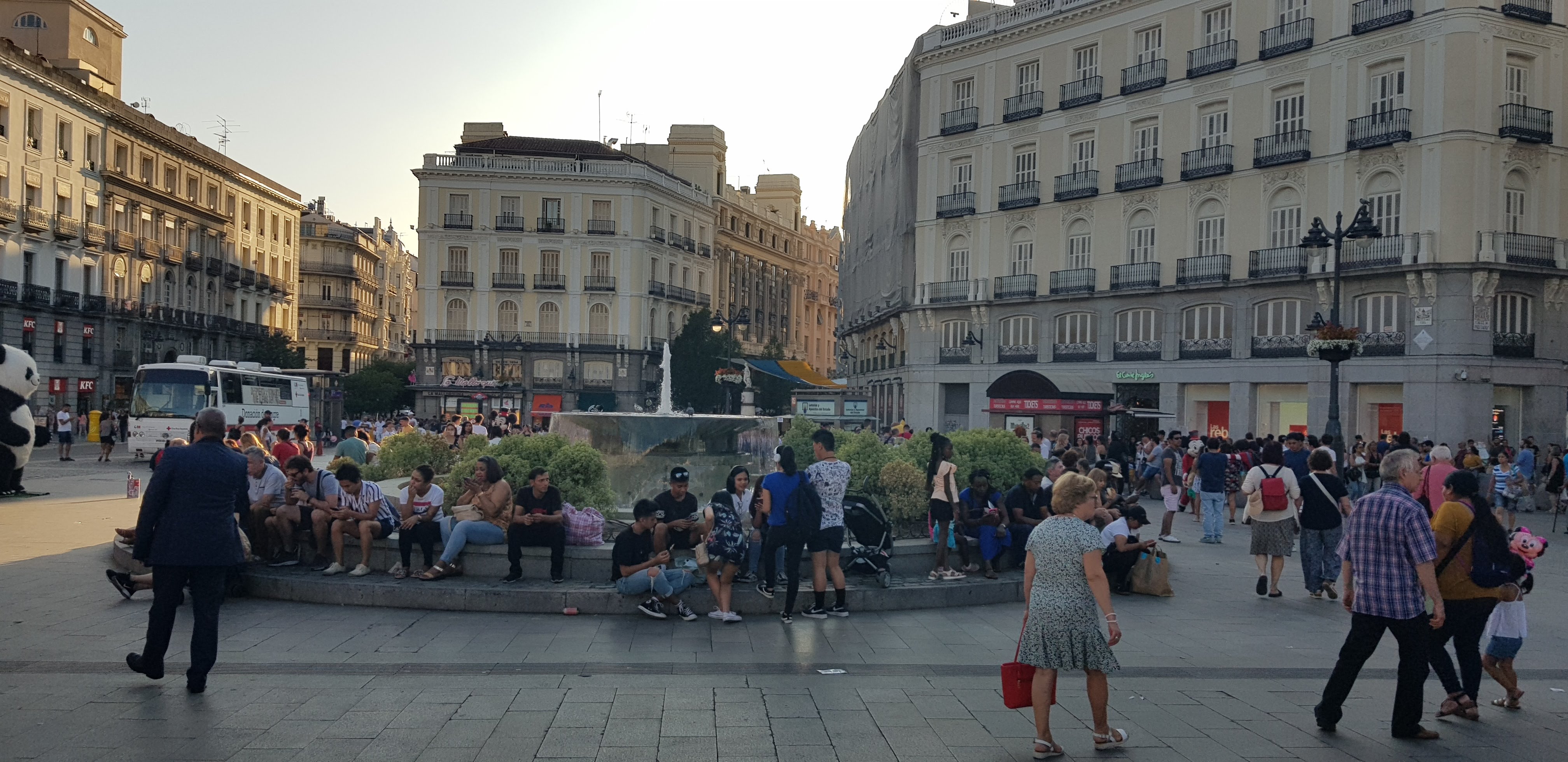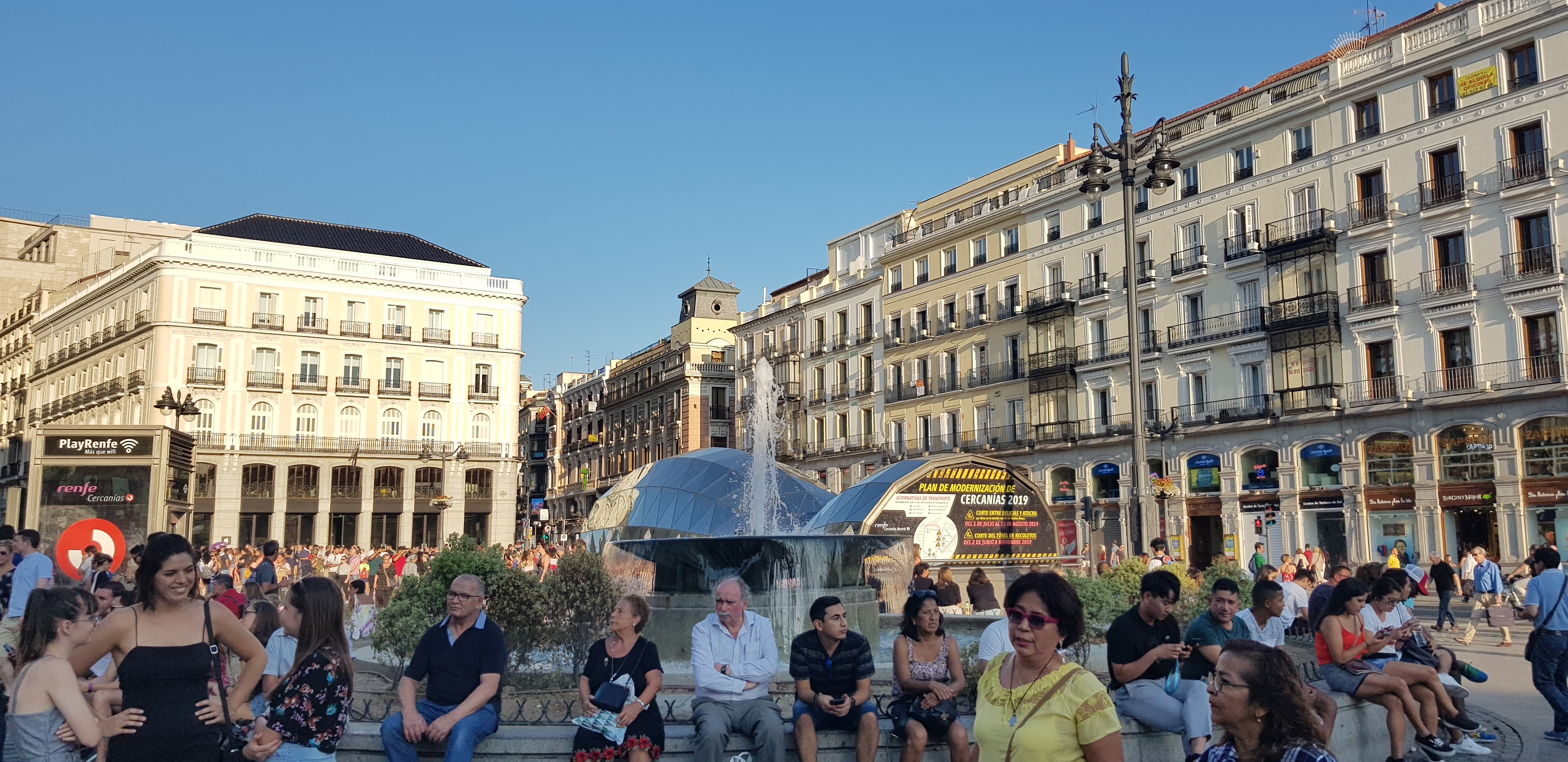 마드리드의 중심이라고 할 수 있는 '솔 광장'은 '태양의 문'이라는 뜻을 가지고 있는 아주 유명한 곳입니다. 지하철 SOL 역이 근처에 있어 마드리드 전역에서 쉽게 찾아오기 쉽습니다. 광장에는 외국인 관광객뿐만 아니라 마드리드 시민들도 많이 있습니다.