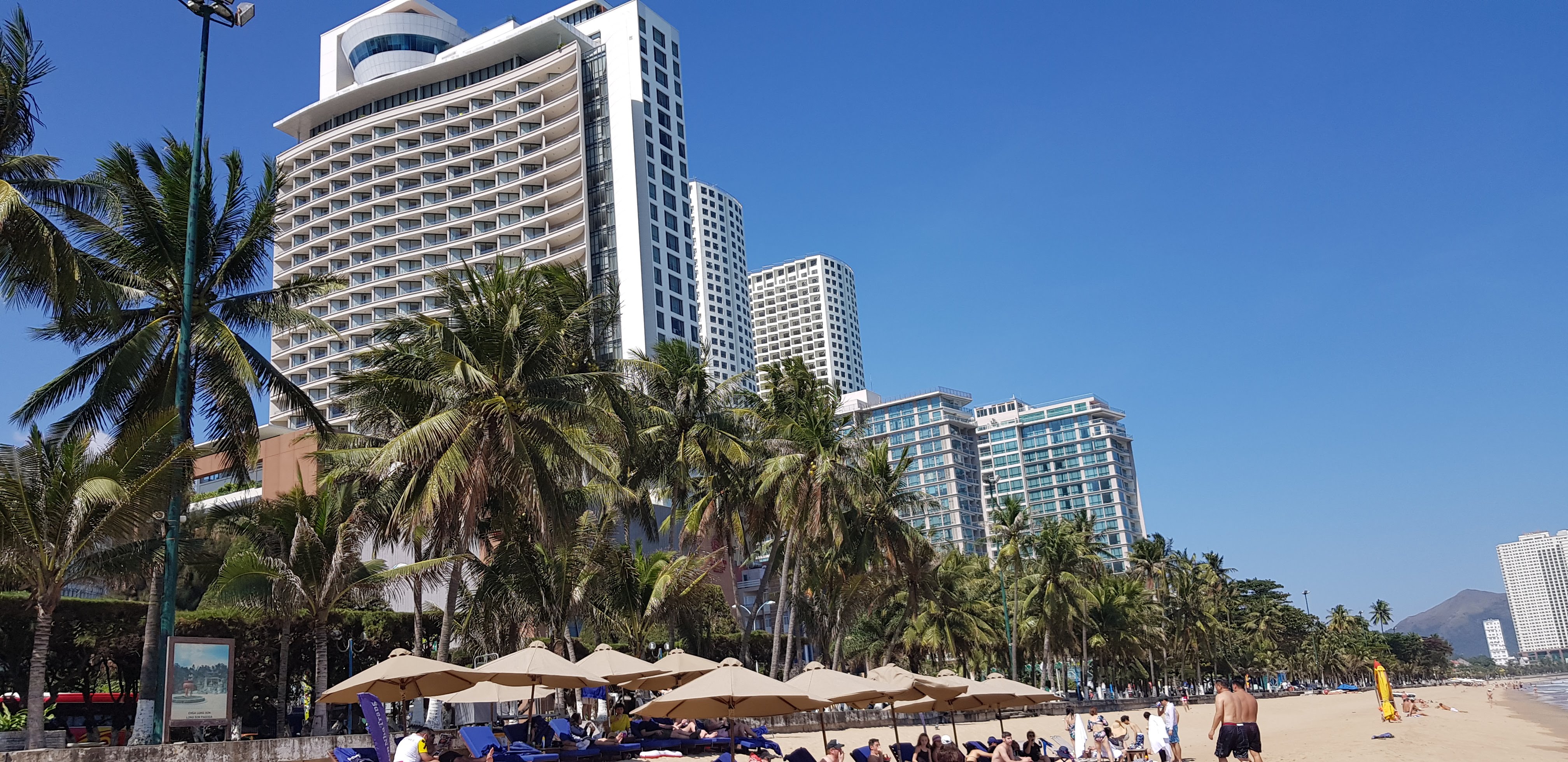 옆쪽에는 쉐라톤 호텔이 있고 쉐라톤 호텔의 프라이빗 비치도 있습니다. 해변에서 타월도 빌릴 수 있고.. 투숙객들이 나와서 즐기기 좋습니다. 다만 자리 경쟁이 좀 있을 수 있습니다.