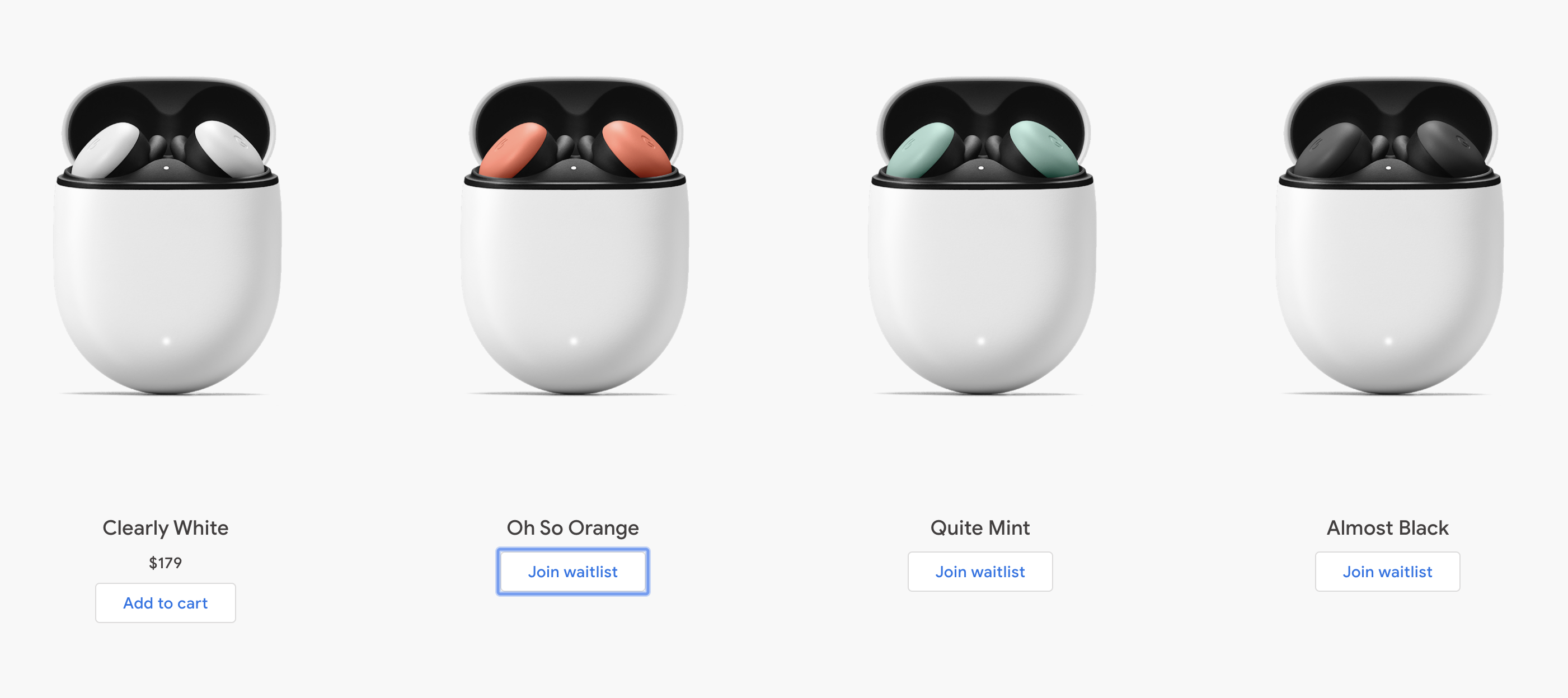 전작인 픽셀 버즈 1은 유선이어폰이었는데요. 픽셀 버즈 2는 무선 이어폰으로 출시되었습니다. 가격은 $179(약 22만원)로 전작에 비해 20달러 정도 더 비싸졌습니다. 에어팟 2세대가 $199 였던 것이 비교해보면 그것보다는 저렴합니다.