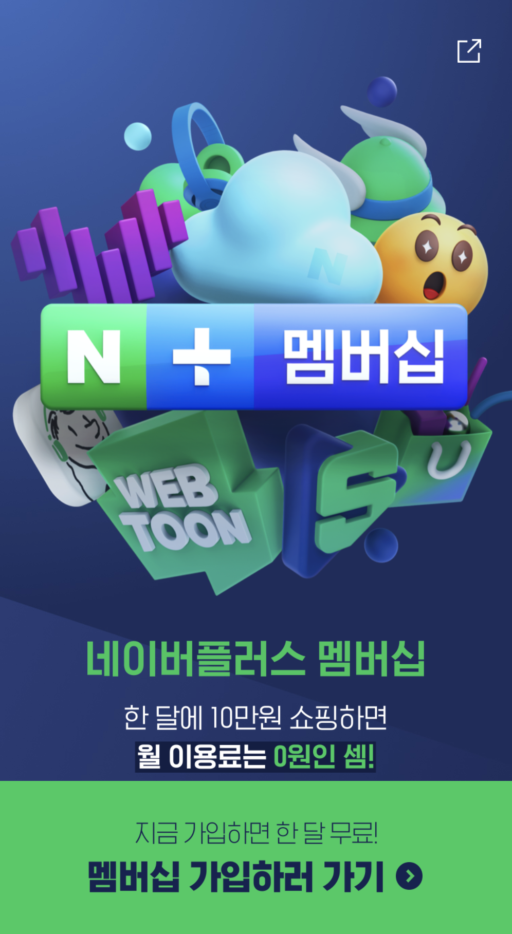 네이버 페이를 한달에 10만원 쓰면, 네이버플러스 멤버십의 월 이용료가 공짜가 되는 셈입니다.