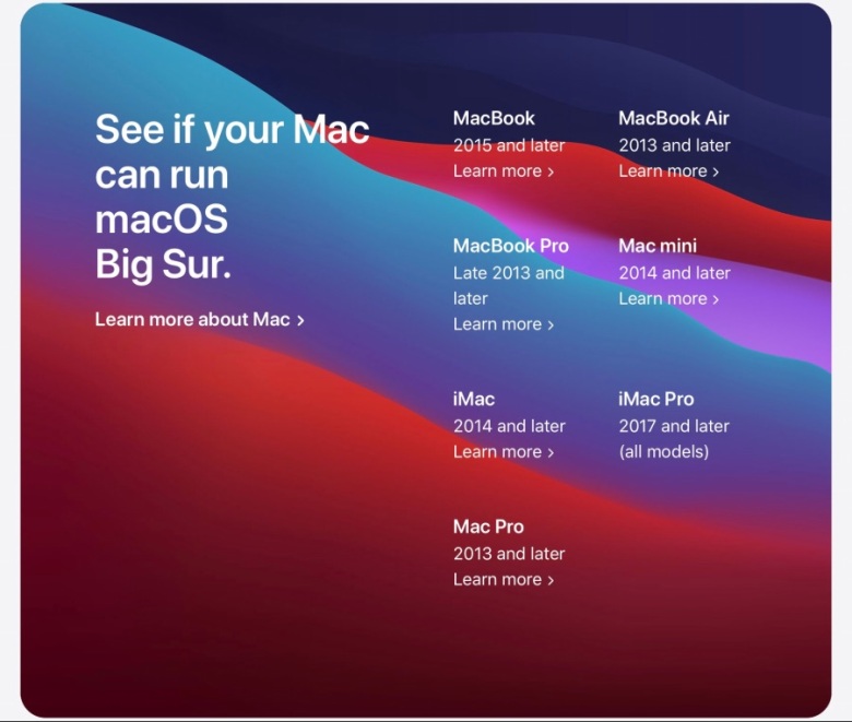 2015년 출시된 iPhone 6S가 이번에도 iOS14 업데이트라는 성은을 입었습니다. 애플은 늙은 아이폰의 은퇴를 윤허하지 않으려는 모양입니다. '아이패드 에어 2'는 무려 2014년 10월에 출시했죠. 빅서는 2013년 맥북 모델에도 적용됩니다.