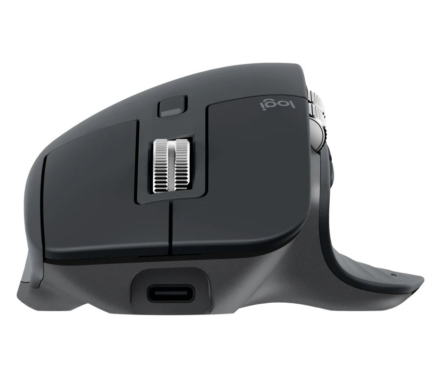 로지텍 'MX Master 3'는 USB-C 포트를 이용해 충전할 수 있습니다. 완충시 최대 70일을 사용할 수 있으며 1분 충전에 3시간을 사용할 수 있는 고속 충전 기능도 제공됩니다.