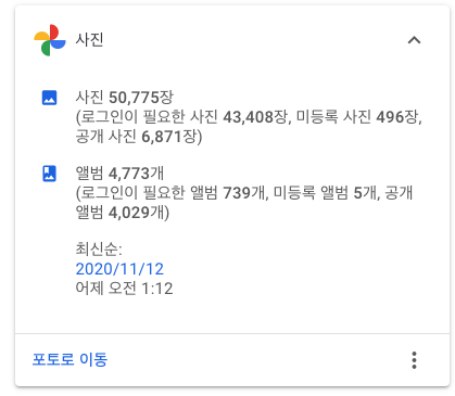 위 페이지에 접속하면 구글의 다양한 서비스들에 대한 메타 정보들을 볼 수 있습니다. 조금 아래쪽을 보면 '사진' 항목이 있습니다.