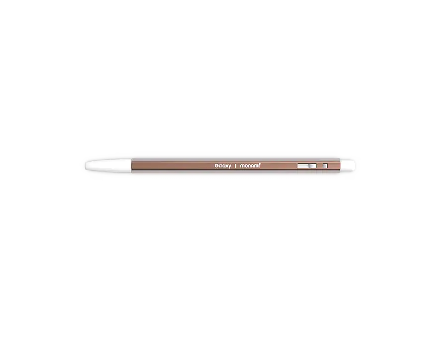 모나미 153 펜의 심플한 디자인과 메탈 소재의 바디를 적용하여 고급스러운 느낌까지 더했습니다. 국민 볼펜이라고 할 수 있는 모나미펜을 S펜으로 만들기까지 약 6개월 동안 기획과 상용화 과정을 거쳤다고 합니다.
